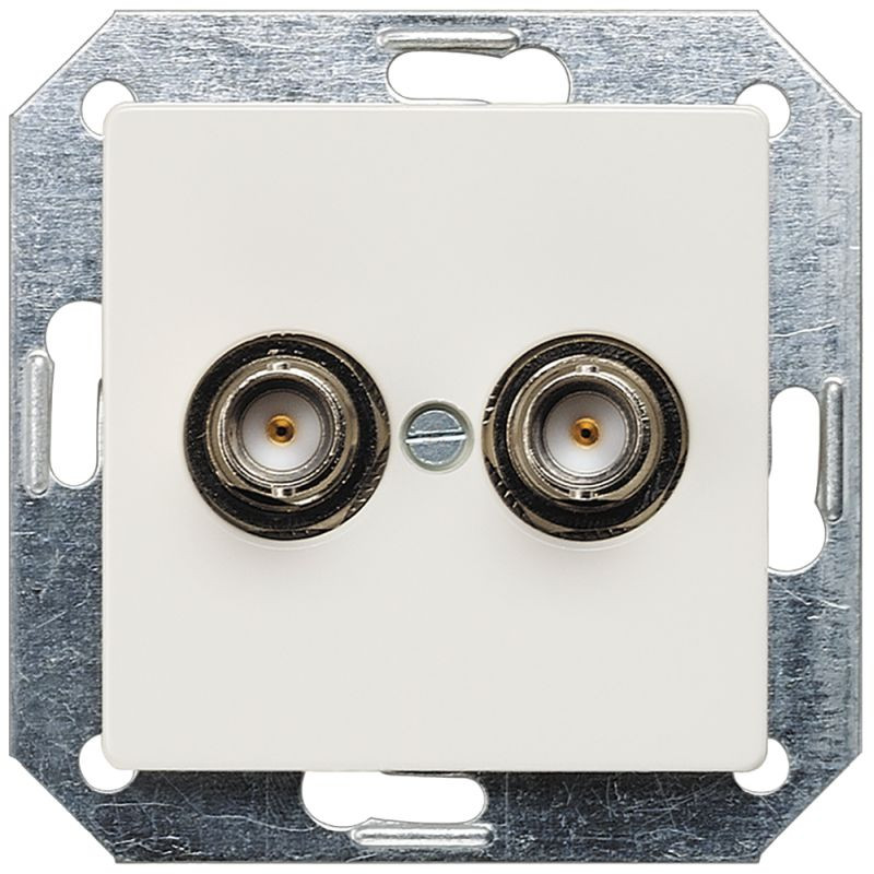 DELTA i-system titánfehér BNC dugaszolóaljzat 2-szeres, 75 ohmos fedőlemez 55 x 55 mm\nA DELTA i-system dugaszolóaljzat stílusos formáival és széles színválasztékával egyedi tervezési lehetőségeket kínál, amelyek kiemelik bármely helyiség esztétikáját.