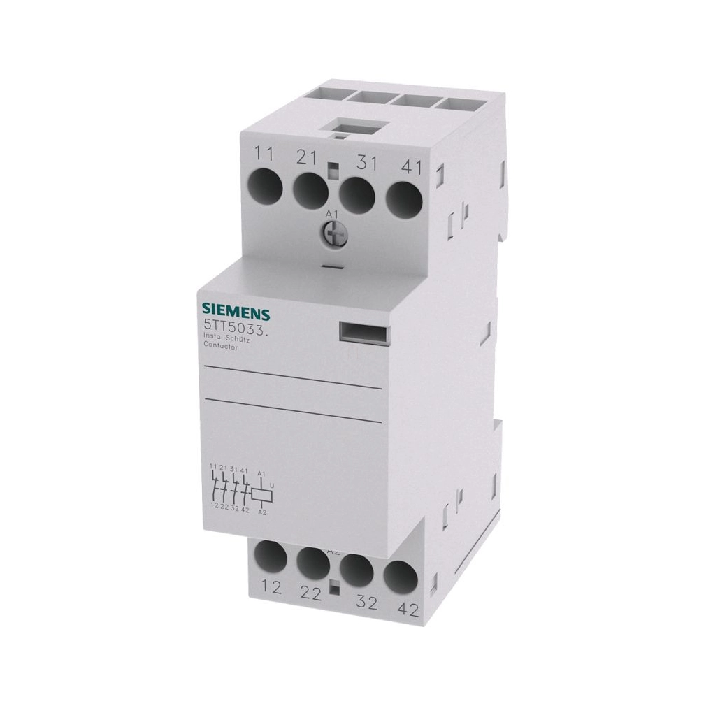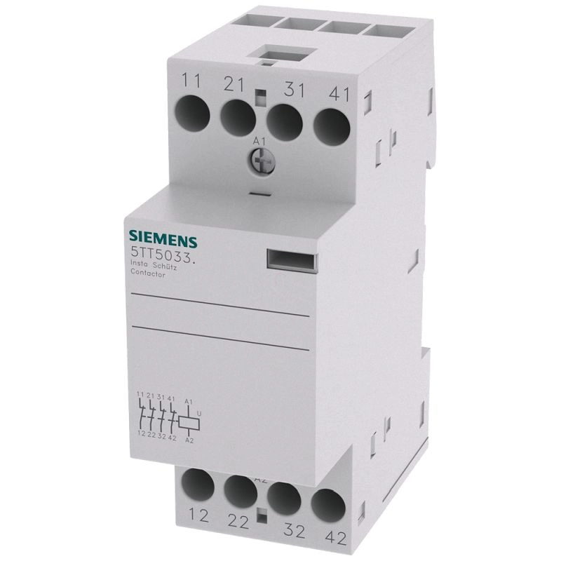 Az INSTA kontaktor 4 NC érintkezővel ideális megoldás a 230 V AC és 400 V 25 A vezérléshez.