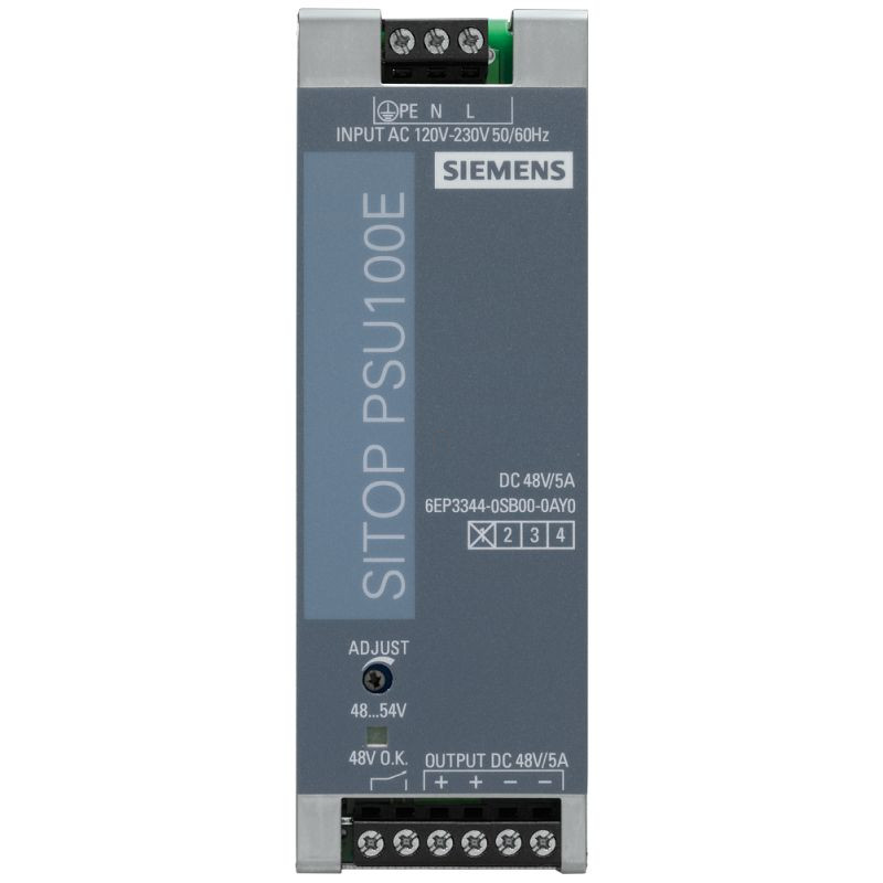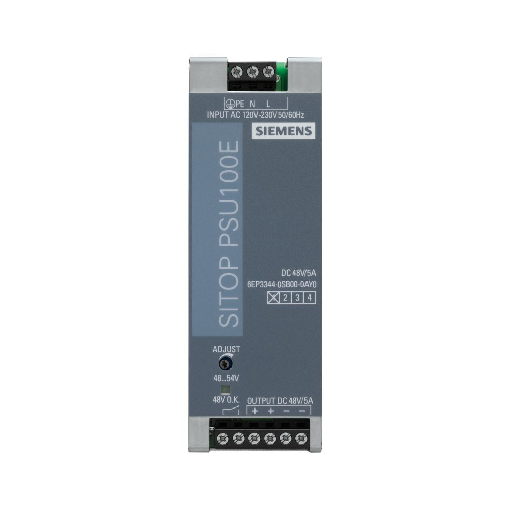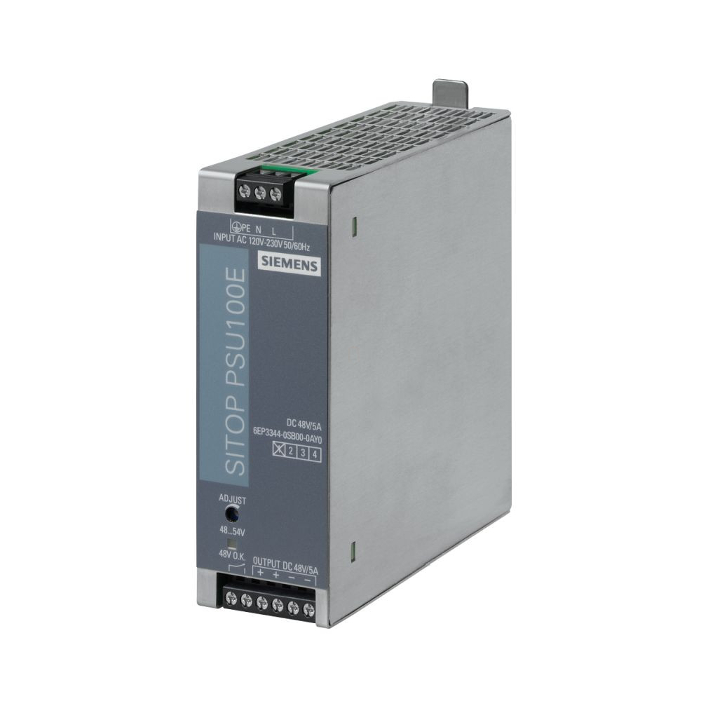 A SITOP PSU100E egy stabilizált tápegység, amely 48 V DC/5 A kimenetet biztosít.
