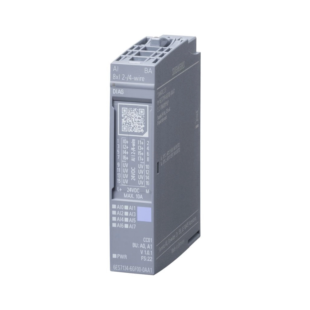 Siemens 6ES7134-6GF00-0AA1 ET200SP AI 8XI 2/4-wire Basic, BU type A0, A1, Color code CC01, 16 bit