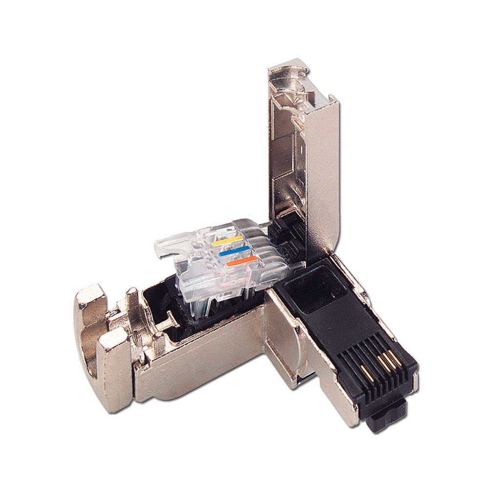 A termék egy masszív fémházzal rendelkező RJ45 dugaszolható csatlakozó, amely 10/100 Mbit/s sebességet biztosít.