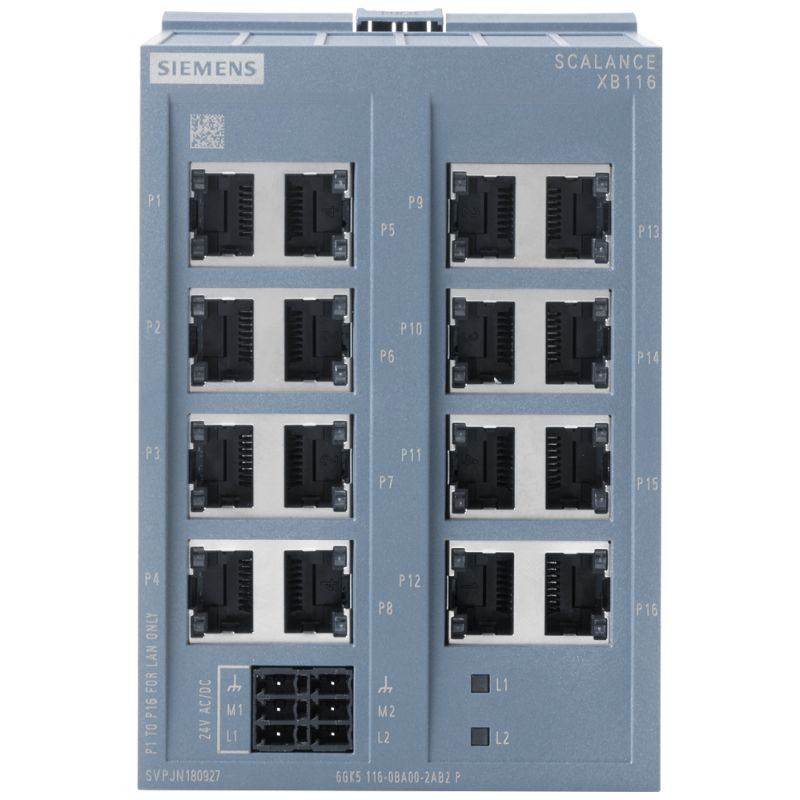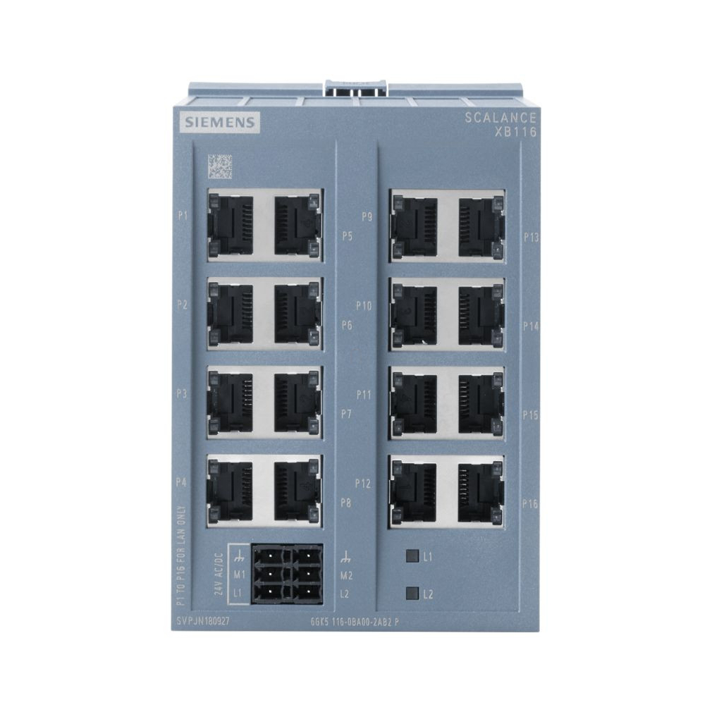 A SCALANCE XB116 ideális kapcsoló a megbízható és robusztus hálózati infrastruktúra biztosításához.