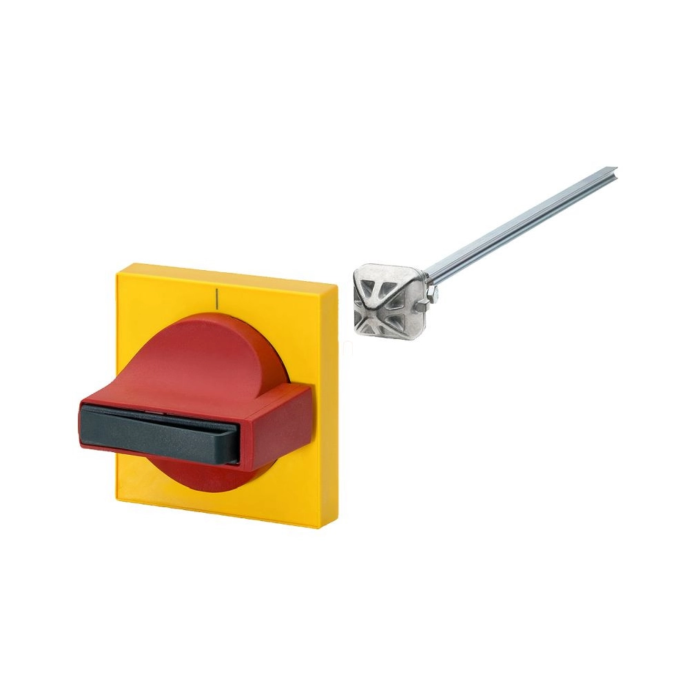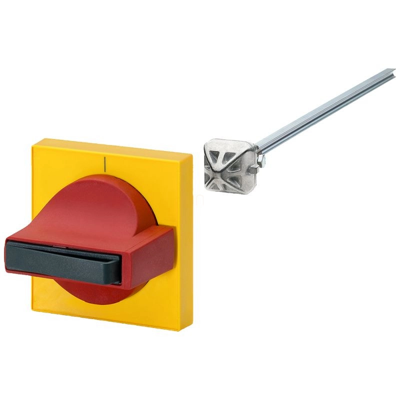 Ajtóműködtető mechanizmus 8UC7\nA termék egy piros kilincs és sárga maszkkeret kombinációja, amely 3VL1, 3VL2, 3VL3 megszakítókhoz készült, 6x 6 mm működtető tengelyekhez.