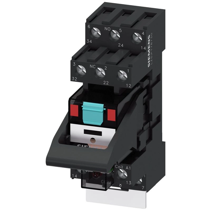 Siemens LZS:PT3A5R24 relé+foglalat, LED-modul védődiódával, 3CO/10A, 24VAC, csavaros