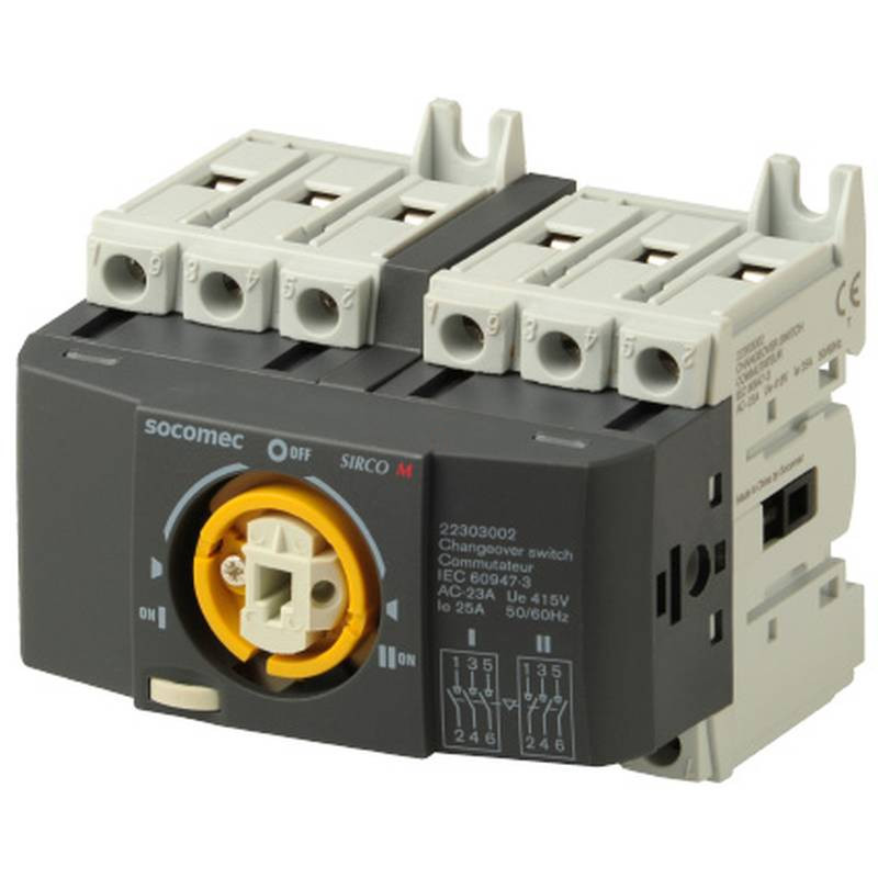 SIRCO átkapcsoló M1 3X25A mechanikus átkapcsoló I-0-II, hajtás nélkül 22303002 Socomec