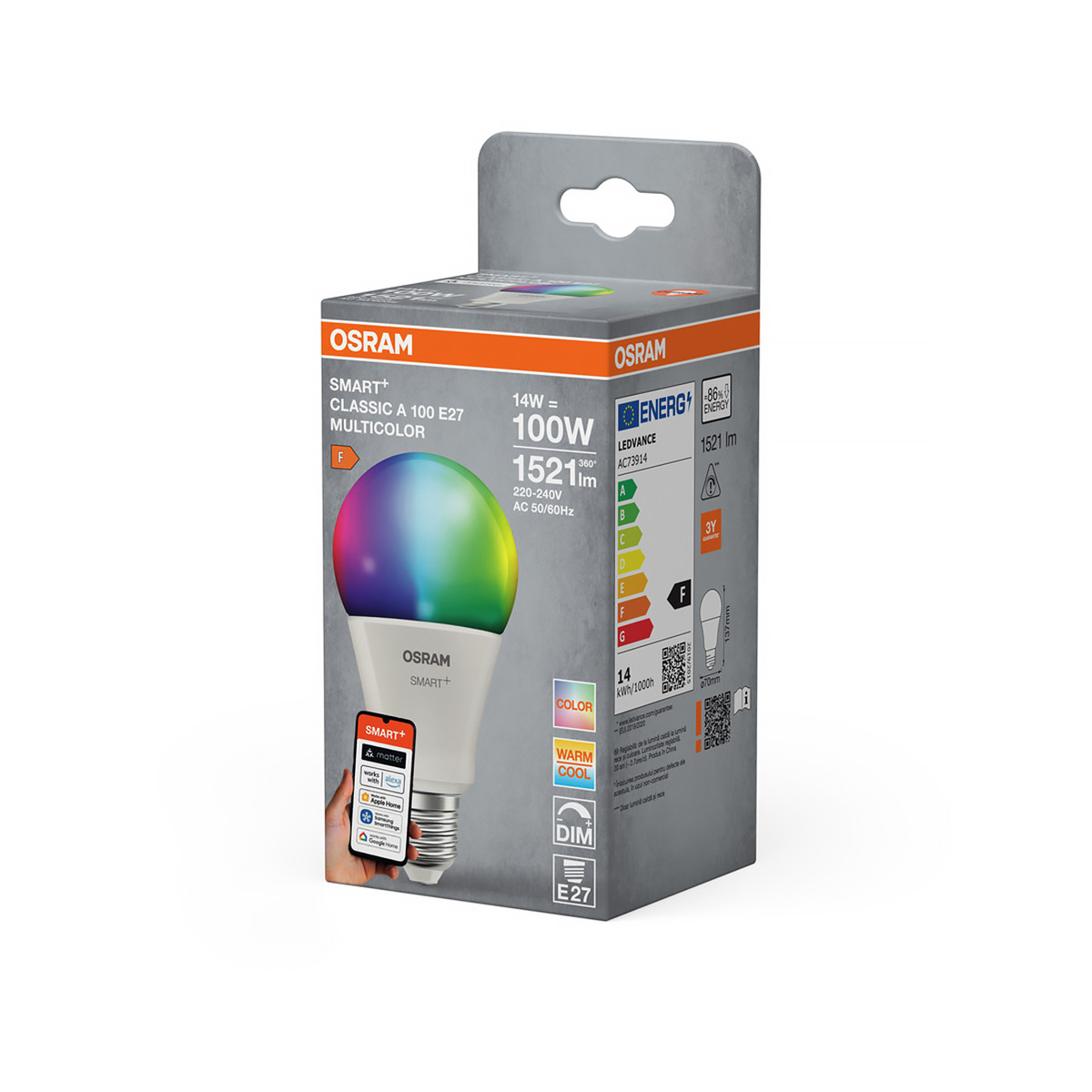 Osram Smart+ Matter Classic Multicolor E27 LED, 14 W, 1521 lm, 2700-6500 K +RGB, dimmelhető