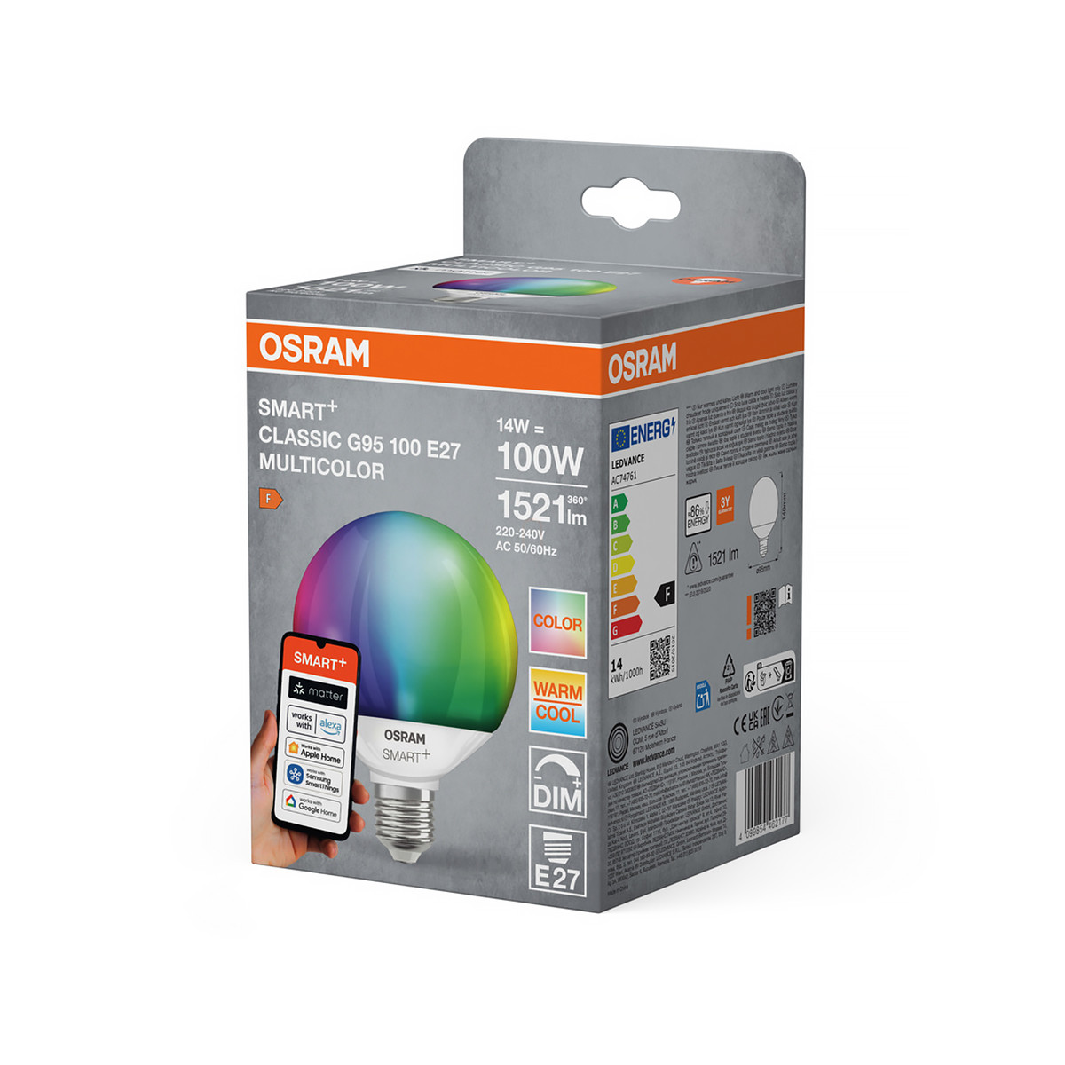 Osram Smart+ Matter Classic Multicolor E27 LED, 14 W, 1521 lm, 2700-6500 K +RGB, dimmelhető