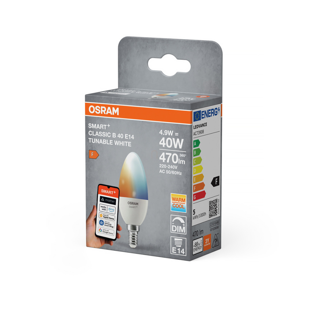 Osram Smart+ Matter Classic E14 LED, 4,9 W, 470 lm, 2700-6500 K, dimmelhető