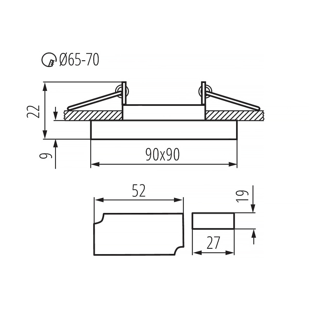 A Soren Kanlux 24417 süllyesztett mennyezeti szögletes spot lámpa modern megoldást kínál álmennyezetbe történő beépítéshez. A lámpatest 1 darab GU10 foglalattal rendelkezik, amely nem tartalmaz fényforrást, így igény szerint választható hozzá megfelelő GU10 LED izzó. A hidegfehér, 6500 K színhőmérsékletű dekor világítás nappali fényhatást biztosít, amely kiemeli a helyiség részleteit. Az alumínium és üveg anyaghasználat tartósságot és elegáns megjelenést garantál. A termék IP20 védettséggel rendelkezik, beltéri használatra alkalmas. A lámpatest mérete 90x90 mm, magassága 22 mm, a kivágási méret 70 mm, így könnyen illeszthető az álmennyezetbe. A termék tömege 0,29 kg, csomagolási méretei 14x14x7 cm. A gyártó Kanlux.