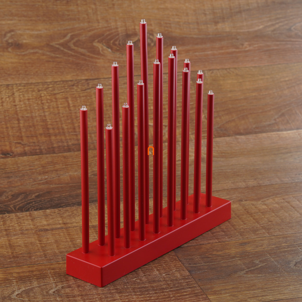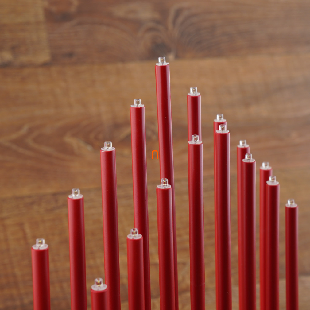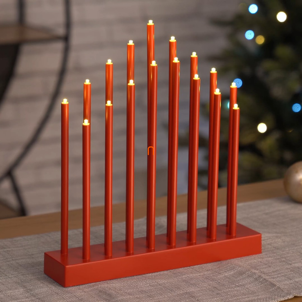 LED gyertyatartó, piros, 28,5 cm, 3x AA, beltéri, meleg fehér, időzítő