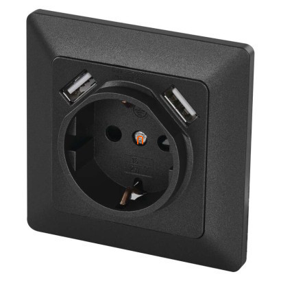 termék: egyszeres dugalj védőtüskével oldalsó és USB kimenettel, 2,1 A max.