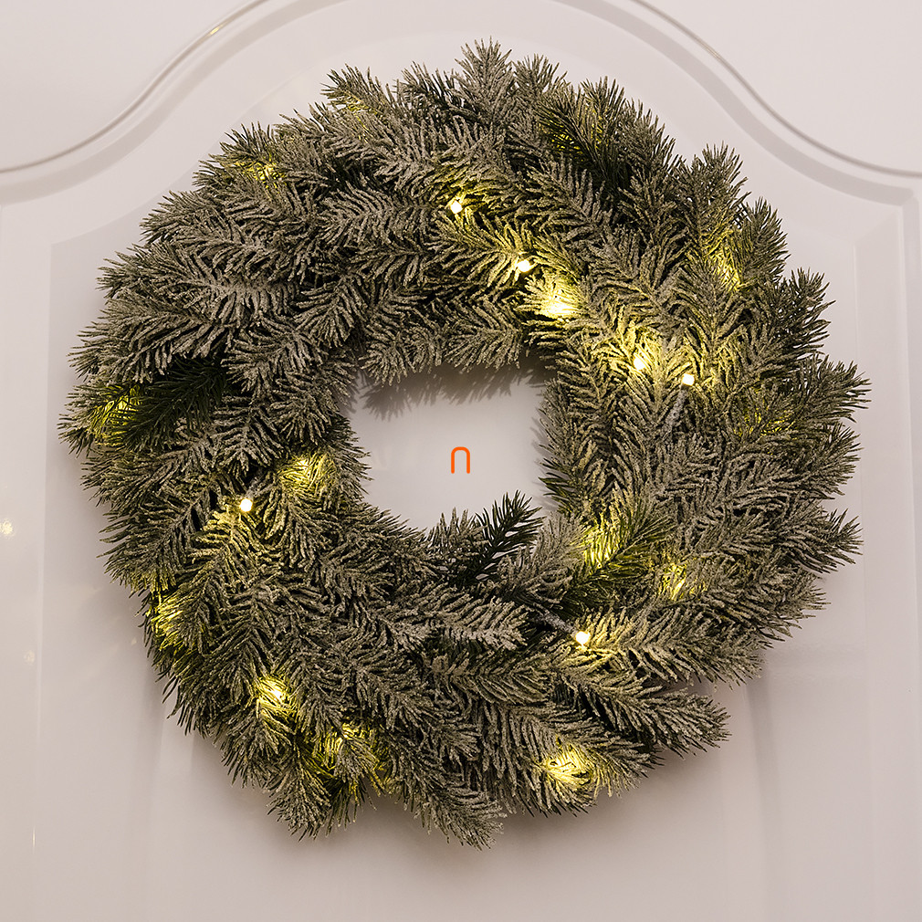 LED dekoráció – adventi koszorú, 40 cm, 2x AA, beltéri, meleg fehér, időzítő