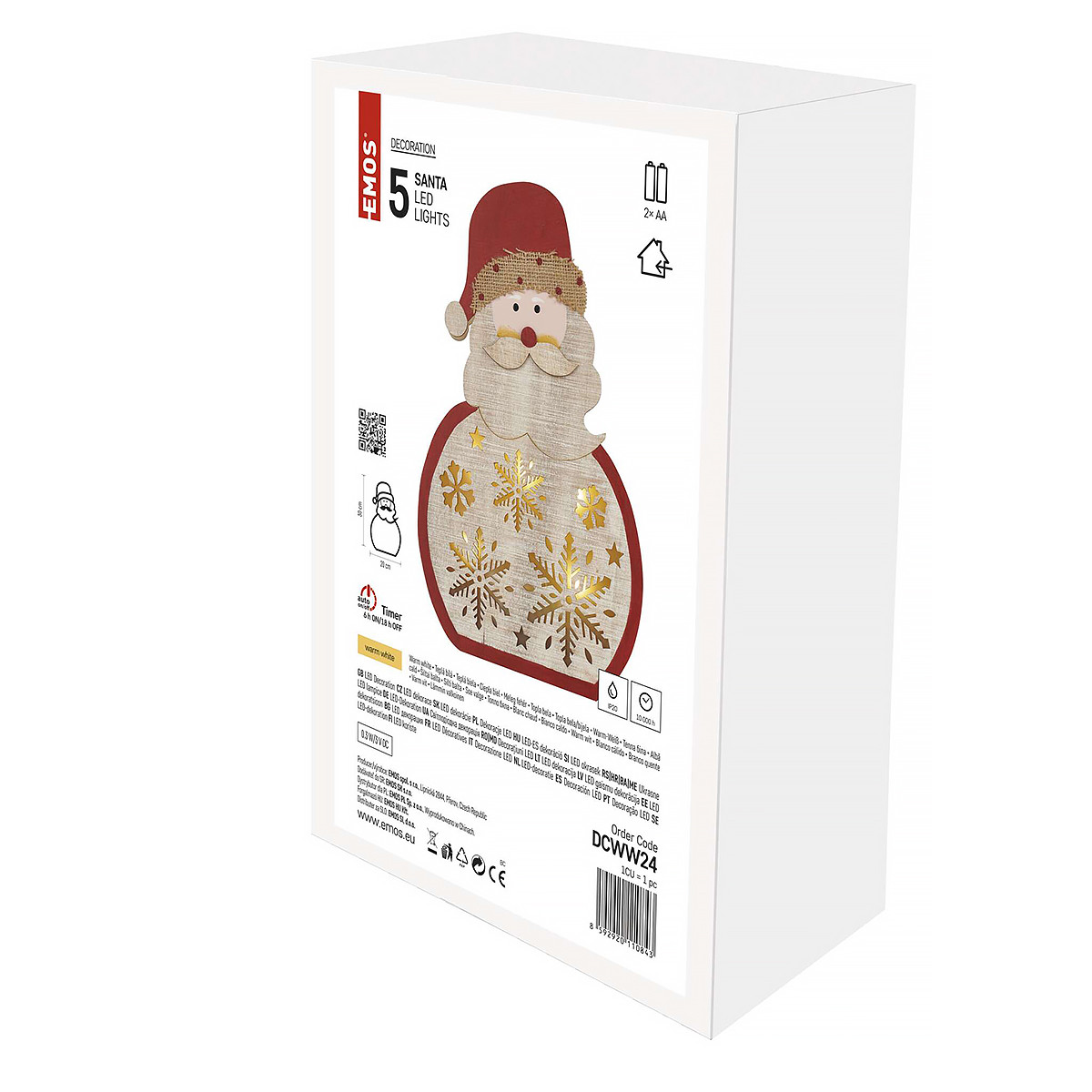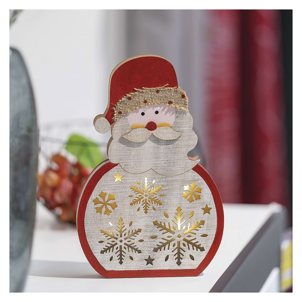 LED dekoráció, fa – Télapó, 30 cm, 2x AAA, beltéri, meleg fehér, időzítő