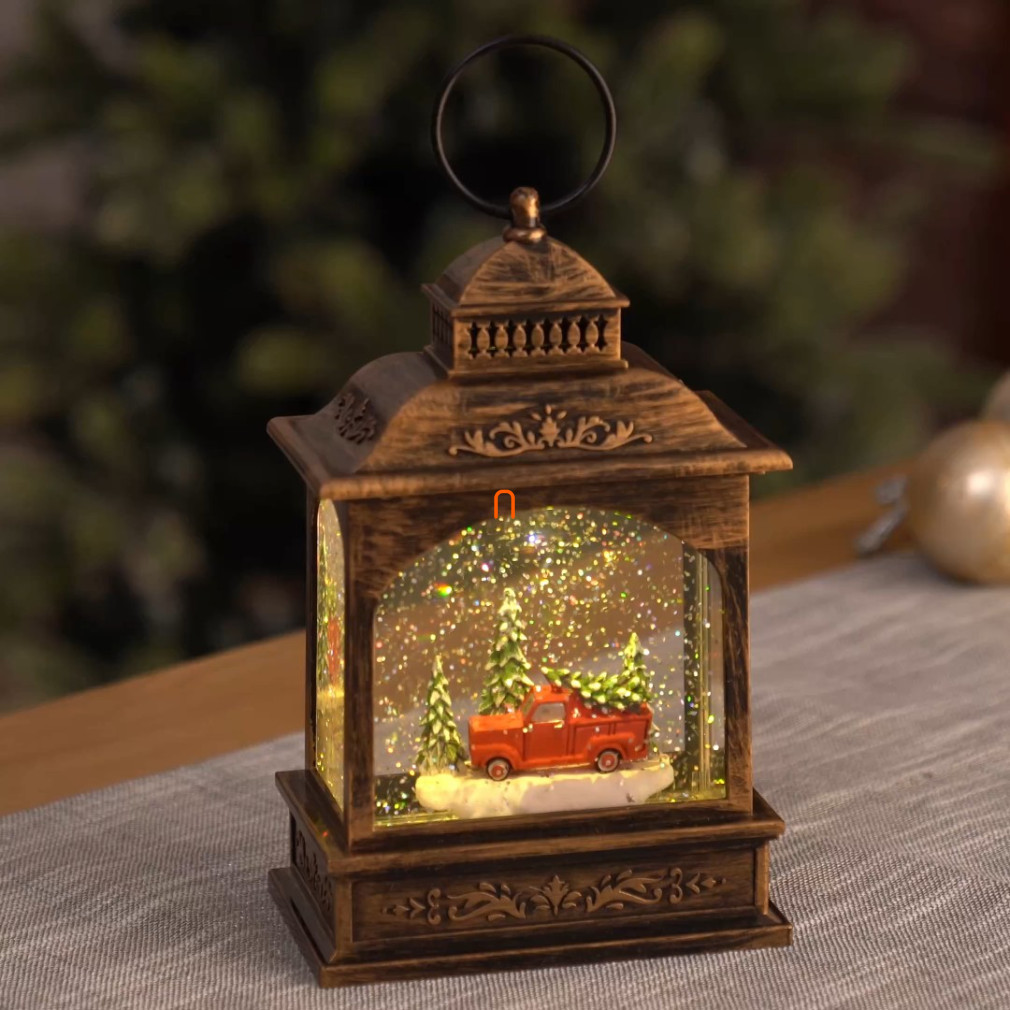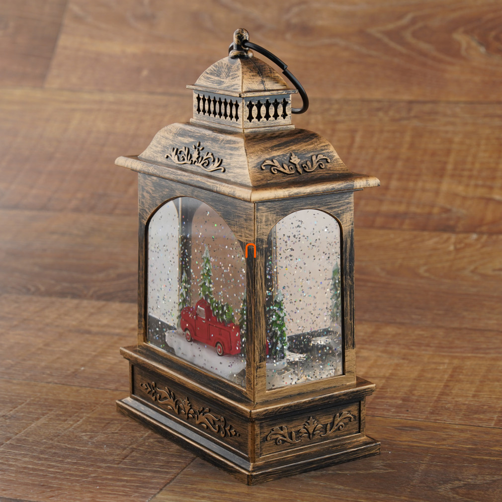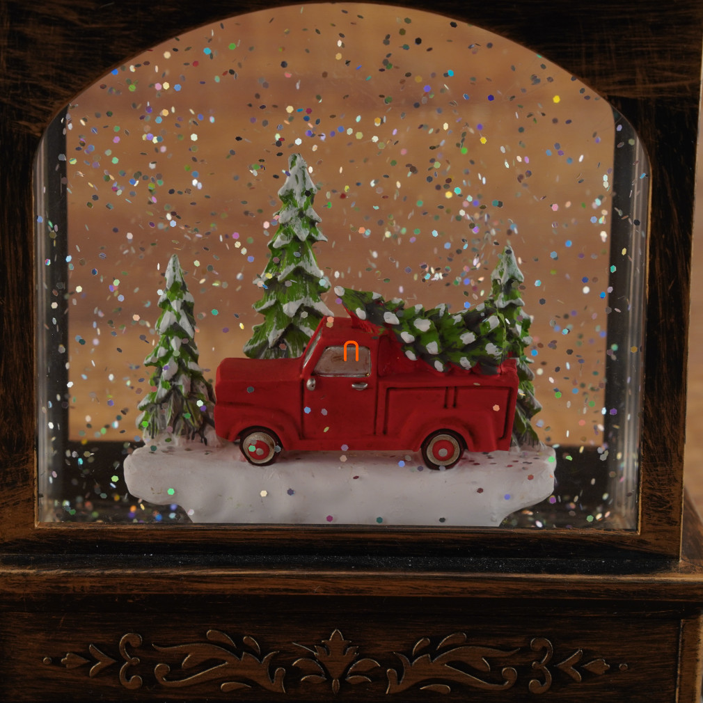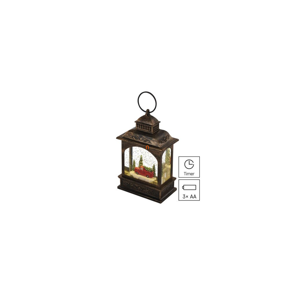 LED dekoráció – karácsonyi lámpás autóval, 21 cm, 3x AA, beltéri, meleg fehér, időzítő