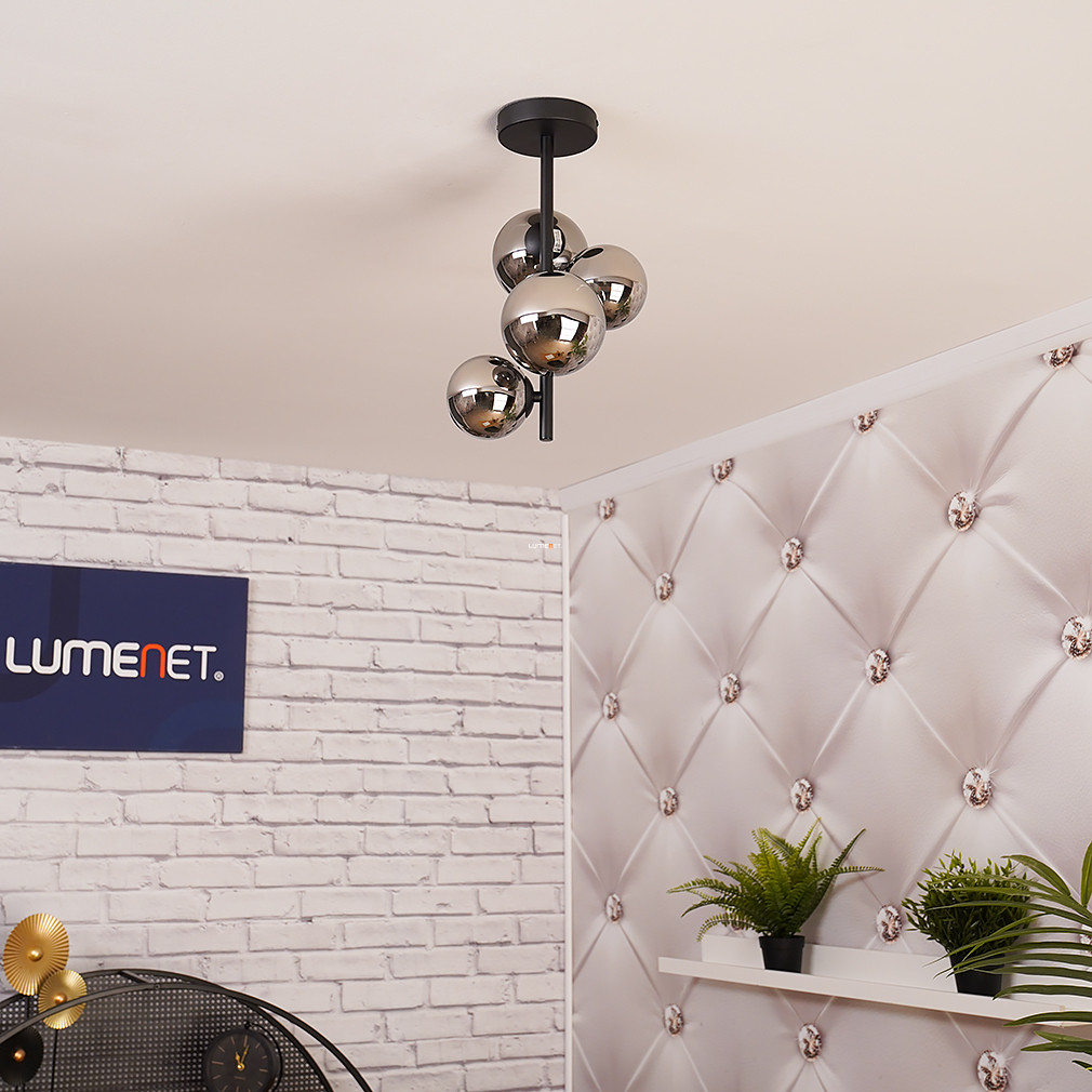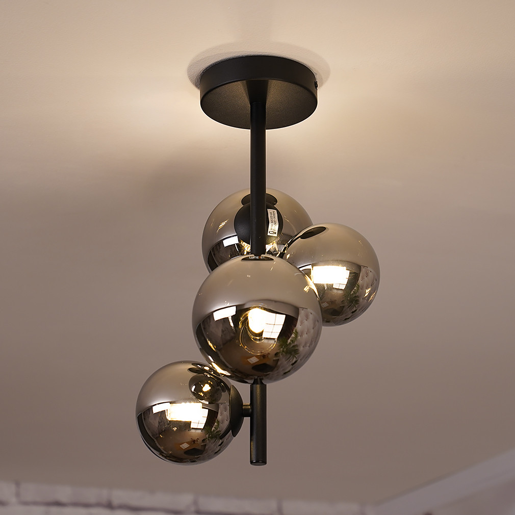 A Spirál mennyezeti lámpa füstszínű üveggömbökkel elegáns és modern megjelenést kölcsönöz bármelyik helyiségnek.