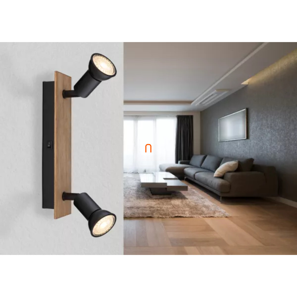 A Spot lámpa 2 foglalattal - Drew Globo 57998-2W egy modern mennyezeti világítótest, amely két darab GU10 típusú cserélhető fényforrás elhelyezését teszi lehetővé. A lámpatest fő anyaga fa, színvilága sötét barna és matt fekete, amely elegánsan illeszkedik különféle enteriőrökbe. A termék névleges feszültsége 230 V, védettségi besorolása IP20, így beltéri használatra alkalmas. A lámpa billenő kapcsolóval vezérelhető, a fényforrásokat nem tartalmazza. Kompakt méretekkel rendelkezik: hossza 250 mm, szélessége 60 mm, magassága 90 mm, tömege pedig 0,38 kg. A csomagolás méretei: 6 cm széles, 8 cm hosszú és 22 cm magas. A lámpatest gyártója a Globo, logisztikai kódja 57998-2W.