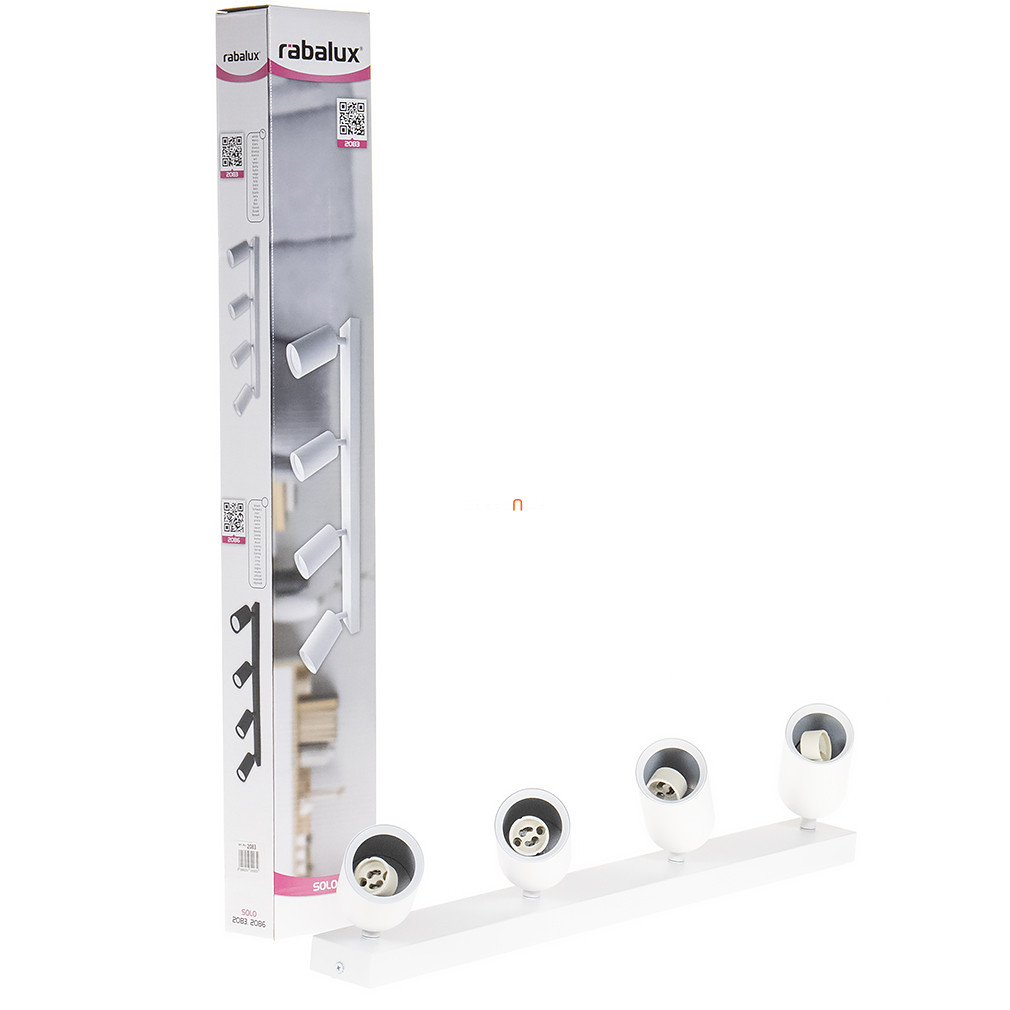 A Solo Rábalux 2083 spot lámpa négy GU10 foglalattal rendelkezik, amelyek mindegyike cserélhető fényforrást támogat, így a fényerő és színhőmérséklet szabadon választható. A lámpatest 60 cm hosszú és 13,5 cm magas, minimál stílusú kialakítása fehér színben, fém anyagból készült, amely tartósságot és modern megjelenést biztosít. Az IP20 védettségi szint beltéri használatra teszi alkalmassá, a csomagolás méretei 10 cm széles, 6 cm hosszú és 69 cm magas. A termék nem tartalmaz fényforrást, a logisztikai kódja 2083, gyártója a Rábalux.