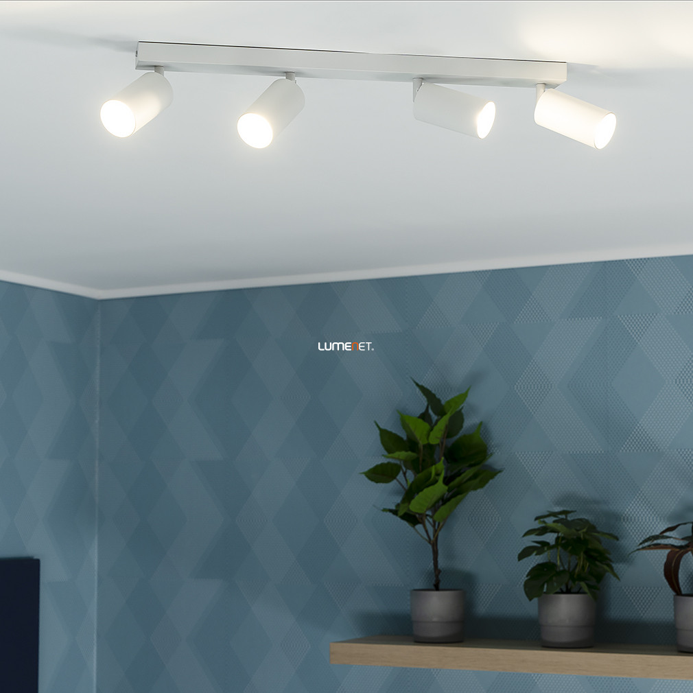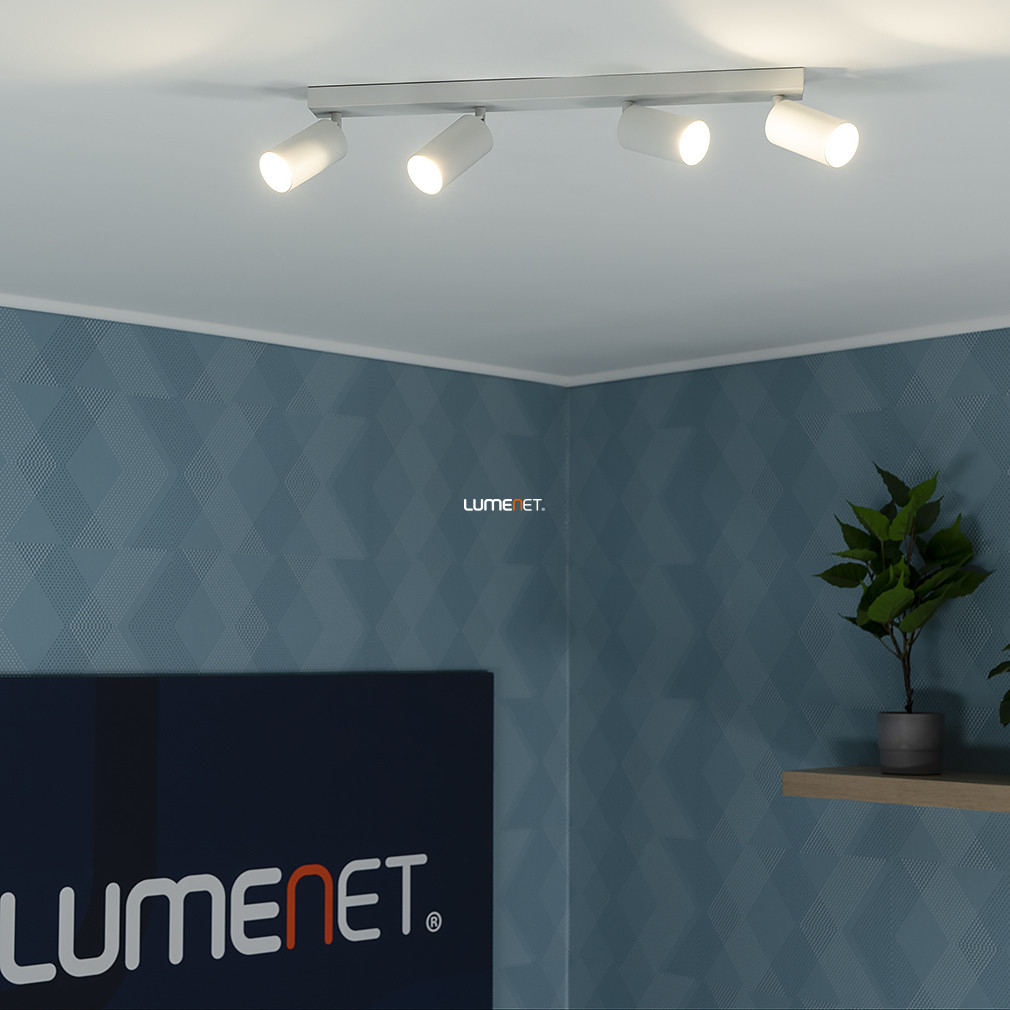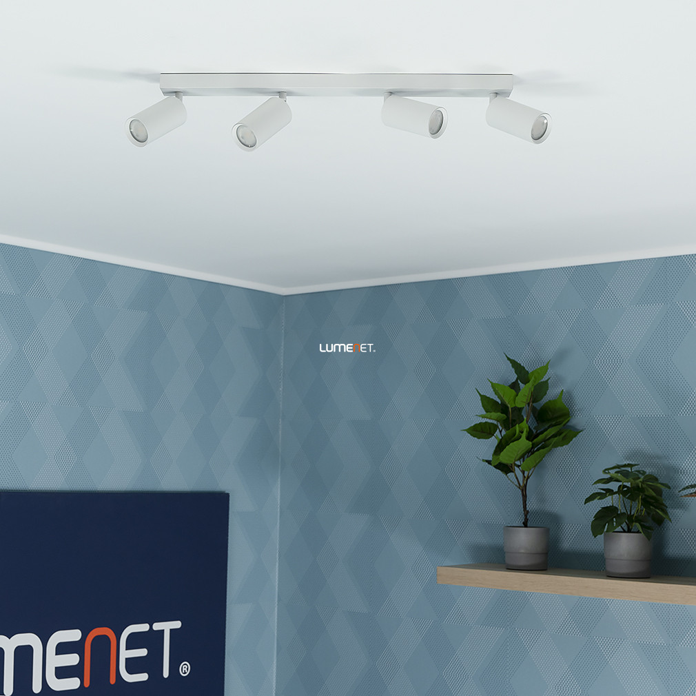 A Spot lámpa 4 foglalattal, 60 cm (Solo) egy modern, minimalista stílusú világítótest, amely ideális választás nappalik, hálószobák vagy akár előszobák megvilágítására. A lámpa teljes egészében fémből készült, fehér színű kivitelben, ami elegáns megjelenést kölcsönöz bármely helyiségnek.A lámpatest négy darab GU10-es foglalattal rendelkezik, amelyek mindegyike legfeljebb 25 W teljesítményű fényforrással használható. Ez lehetőséget ad arra, hogy a saját igényeidnek megfelelően válassz fényforrást, legyen az meleg vagy természetes fehér fényű. Fontos megjegyezni, hogy a csomag nem tartalmazza a fényforrásokat, így azokat külön kell beszerezned.A lámpa méretei praktikusak és könnyen illeszkednek a legtöbb helyiségbe. Szélessége 600 mm, magassága 135 mm, a búrák átmérője pedig 55 mm. A mennyezettől mért távolsága 135 mm, ami elegendő helyet biztosít a fény megfelelő szórásához anélkül, hogy túlzottan kiemelkedne a mennyezet síkjából.A lámpa IP20-as védettséggel rendelkezik, ami azt jelenti, hogy kizárólag beltéri használatra alkalmas, és nem védett a nedvesség ellen. Ezért nem ajánlott fürdőszobákban vagy más, magas páratartalmú helyiségekben történő alkalmazása.A lámpa felszerelése egyszerű, azonban a biztonság érdekében javasolt szakember segítségét igénybe venni a telepítés során. A lámpafejek állíthatóak, így a fény irányát igényeid szerint módosíthatod, lehetővé téve a helyiség különböző részeinek célzott megvilágítását.A lámpa modern és letisztult dizájnja mellett a funkcionalitásra is nagy hangsúlyt fektet. A fémből készült szerkezet tartósságot és hosszú élettartamot biztosít, míg a fehér szín elegáns megjelenést kölcsönöz. A henger alakú búrák és a téglalap alakú dísztalp harmonikus összhangot teremtenek, ami könnyedén illeszkedik a különböző belsőépítészeti stílusokhoz.A lámpa kompatibilis a különböző típusú GU10-es fényforrásokkal, beleértve a LED izzókat is, amelyek energiatakarékosak és hosszú élettartamúak. Ez lehetőséget ad arra, hogy csökkentsd az energiafogyasztást és a karbantartási költségeket, miközben biztosítod a megfelelő fényerőt és hangulatot a helyiségben.A Spot lámpa 4 foglalattal, 60 cm (Solo) egy sokoldalú és esztétikus világítótest, amely kiválóan alkalmas különböző beltéri helyiségek megvilágítására. A minőségi anyaghasználat, az állítható lámpafejek és a modern dizájn mind hozzájárulnak ahhoz, hogy otthonodban kellemes és funkcionális világítást biztosíts.