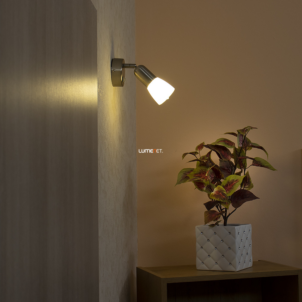 A Spot lámpa ezüst színben, Cathy Globo 5453-1 modell, modern kialakítású fali lámpa, amely fém és opál üveg anyagokból készült. E14 foglalattal rendelkezik, egy darab cserélhető fényforrással használható, azonban a fényforrást nem tartalmazza. A lámpatest méretei 70 mm szélesség és 175 mm magasság, védettségi besorolása IP20. A termék nem szabályozható, színhőmérséklet és fényáram a behelyezett fényforrástól függ. A csomagolás méretei 10x10x15 cm, a lámpa tömege 0,6 kg. A gyártó Globo, a logisztikai kód 5453-1.