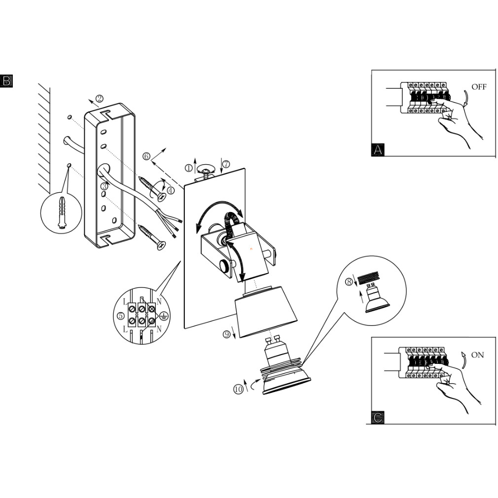 A Trillo Eglo 97371 spot lámpa modern stílusú fali világítótest, amely fehér-fekete színkombinációban készül. A lámpatest anyaga acél, egy darab GU10 foglalattal rendelkezik, amely cserélhető fényforrás befogadására alkalmas. A termék fényforrást tartalmaz, így azonnal használatba vehető. A lámpa IP20 védettségi szinttel bír, ezért beltéri használatra ajánlott. Hosszúsága 70 mm, magassága 165 mm, tömege 0,5 kg. A csomagolás mérete 9x12x18 cm. A Trillo Eglo 97371 logisztikai kód alatt érhető el, gyártója az EGLO.