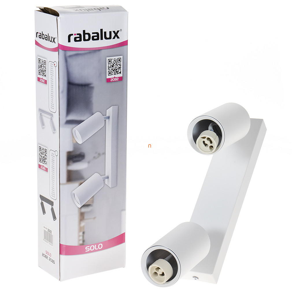 A Solo Rábalux 2082 mennyezeti spot lámpa fehér színben, minimál stílusban készült, és két darab GU10-es foglalattal rendelkezik. A lámpatest anyaga fém, mely tartósságot és modern megjelenést biztosít. A termék nem tartalmaz fényforrást, így a fényáram, színhőmérséklet és teljesítmény a kiválasztott cserélhető fényforrástól függ. A lámpa IP20-as védettséggel rendelkezik, így beltéri használatra alkalmas. A lámpatest méretei: hossza 295 mm, magassága 135 mm. A csomagolás méretei: szélesség 10 cm, hosszúság 6 cm, magasság 35 cm. A termék tömege 0,58 kg, gyártója a Rábalux.