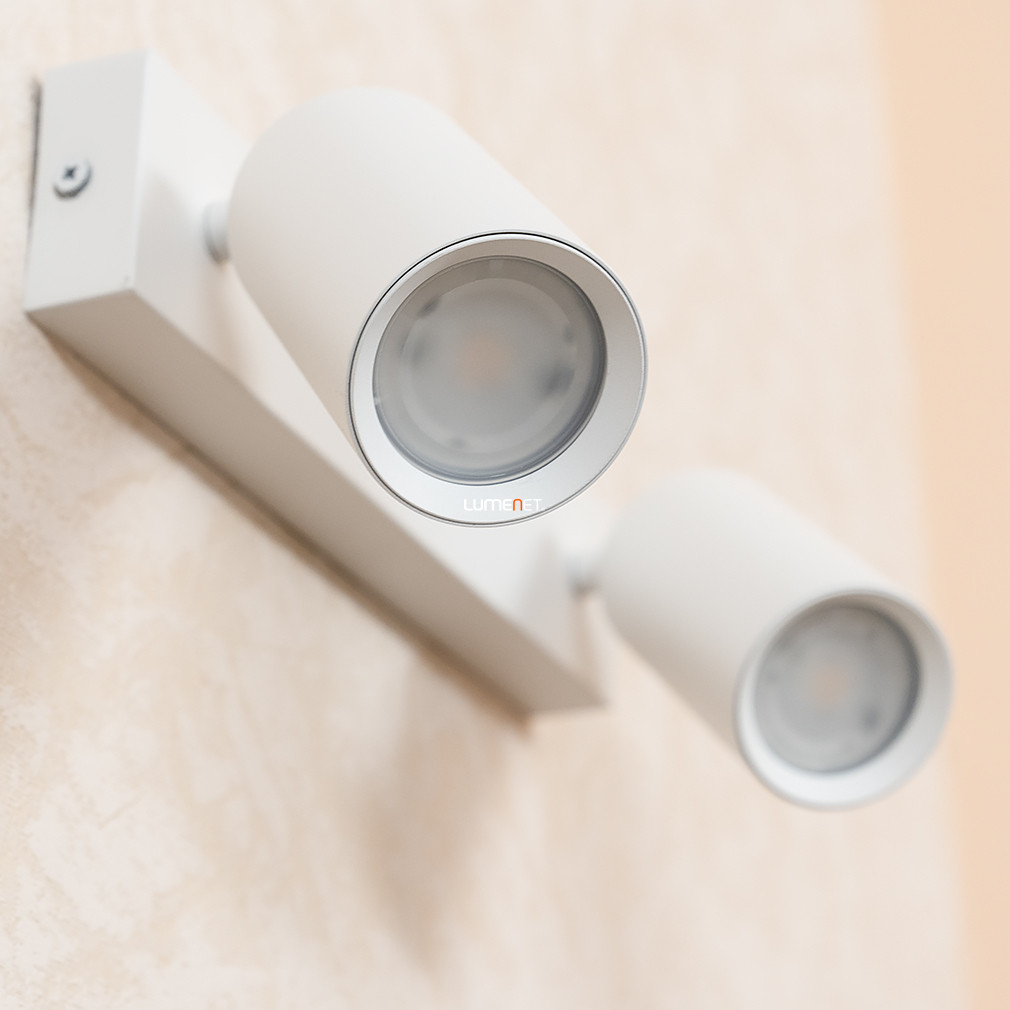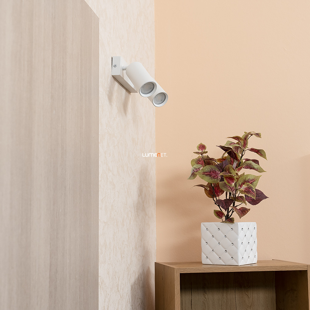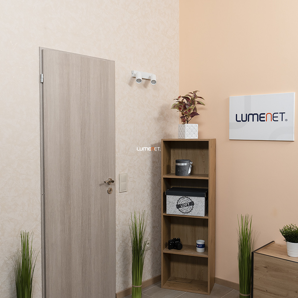 A Spot lámpa fehér színben (Solo) egy modern és letisztult kialakítású világítótest, amely ideális választás lehet otthonod különböző helyiségeinek megvilágítására. A lámpa teljes egészében fémből készült, ami tartósságot és hosszú élettartamot biztosít. Fehér színe elegáns megjelenést kölcsönöz, könnyedén illeszkedik a különböző belsőépítészeti stílusokhoz, legyen szó minimalista, skandináv vagy akár klasszikus enteriőrről.A lámpatest két darab GU10-es foglalattal rendelkezik, amelyek mindegyike legfeljebb 25 W teljesítményű fényforrással használható. Ez lehetőséget ad arra, hogy a saját igényeidnek megfelelően válassz fényforrást, legyen az meleg vagy természetes fehér fényű. Fontos megjegyezni, hogy a csomag nem tartalmazza a fényforrásokat, így azokat külön kell beszerezned. A GU10-es foglalat széles körben elterjedt, így könnyedén találsz hozzá kompatibilis izzókat, beleértve az energiatakarékos LED változatokat is.A lámpa méretei praktikusak és könnyen illeszkednek a legtöbb helyiségbe. Szélessége 300 mm, magassága 140 mm, a búrák átmérője pedig 55 mm. A mennyezettől mért távolsága 135 mm, ami elegendő helyet biztosít a fény megfelelő szórásához anélkül, hogy túlzottan kiemelkedne a mennyezet síkjából. Ez a kompakt méret lehetővé teszi, hogy kisebb helyiségekben is hatékonyan alkalmazd, például előszobákban, folyosókon vagy kisebb nappalikban.A lámpa IP20-as védettséggel rendelkezik, ami azt jelenti, hogy kizárólag beltéri használatra alkalmas, és nem védett a nedvesség ellen. Ezért nem ajánlott fürdőszobákban vagy más, magas páratartalmú helyiségekben történő alkalmazása. A lámpa felszerelése egyszerű, azonban a biztonság érdekében javasolt szakember segítségét igénybe venni a telepítés során. A lámpafejek állíthatóak, így a fény irányát igényeid szerint módosíthatod, lehetővé téve a helyiség különböző részeinek célzott megvilágítását.A lámpa modern és letisztult dizájnja mellett a funkcionalitásra is nagy hangsúlyt fektet. A fémből készült szerkezet tartósságot és hosszú élettartamot biztosít, míg a fehér szín elegáns megjelenést kölcsönöz. A henger alakú búrák és a téglalap alakú dísztalp harmonikus összhangot teremtenek, ami könnyedén illeszkedik a különböző belsőépítészeti stílusokhoz.A lámpa kompatibilis a különböző típusú GU10-es fényforrásokkal, beleértve a LED izzókat is, amelyek energiatakarékosak és hosszú élettartamúak. Ez lehetőséget ad arra, hogy csökkentsd az energiafogyasztást és a karbantartási költségeket, miközben biztosítod a megfelelő fényerőt és hangulatot a helyiségben.Összefoglalva, a Spot lámpa fehér színben (Solo) egy sokoldalú és esztétikus világítótest, amely kiválóan alkalmas különböző beltéri helyiségek megvilágítására. A minőségi anyaghasználat, az állítható lámpafejek és a modern dizájn mind hozzájárulnak ahhoz, hogy otthonodban kellemes és funkcionális világítást biztosíts.