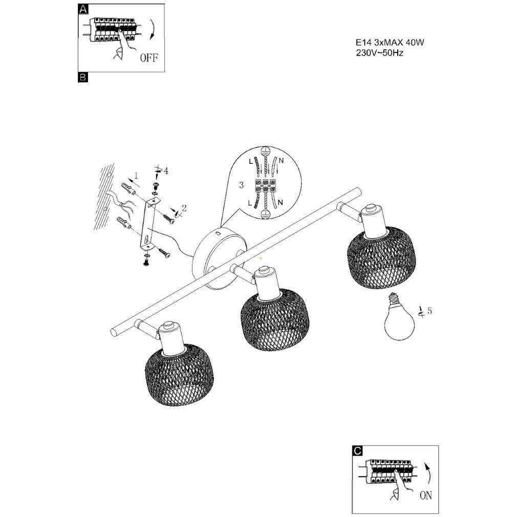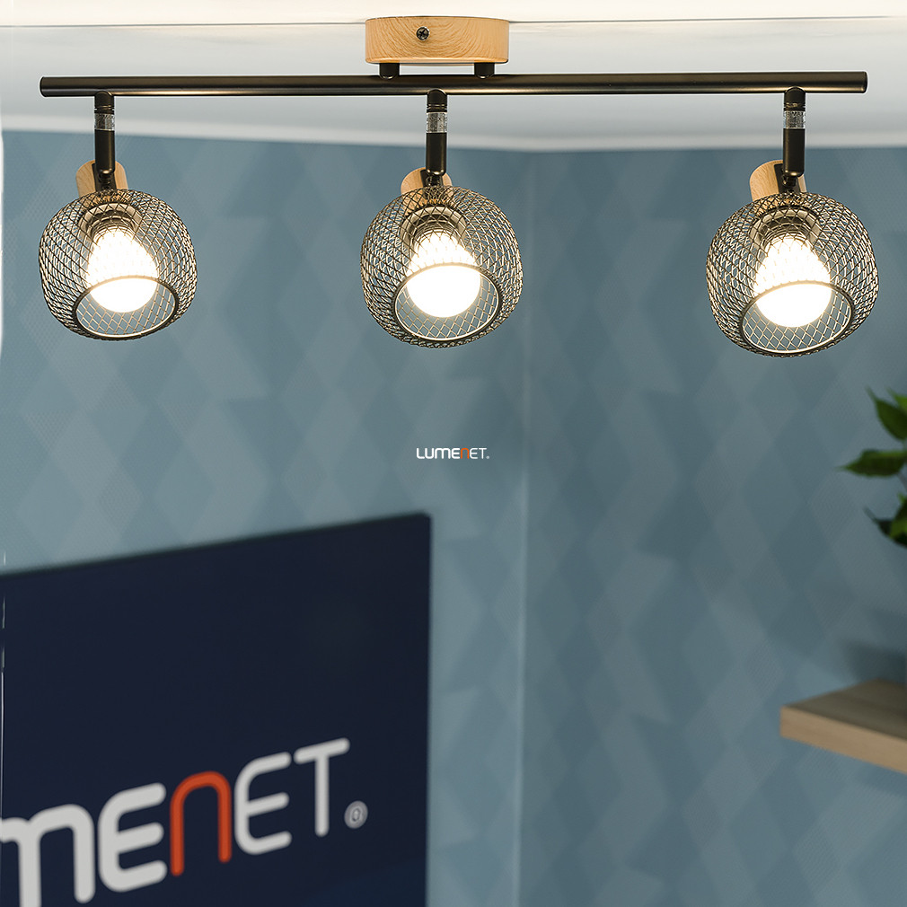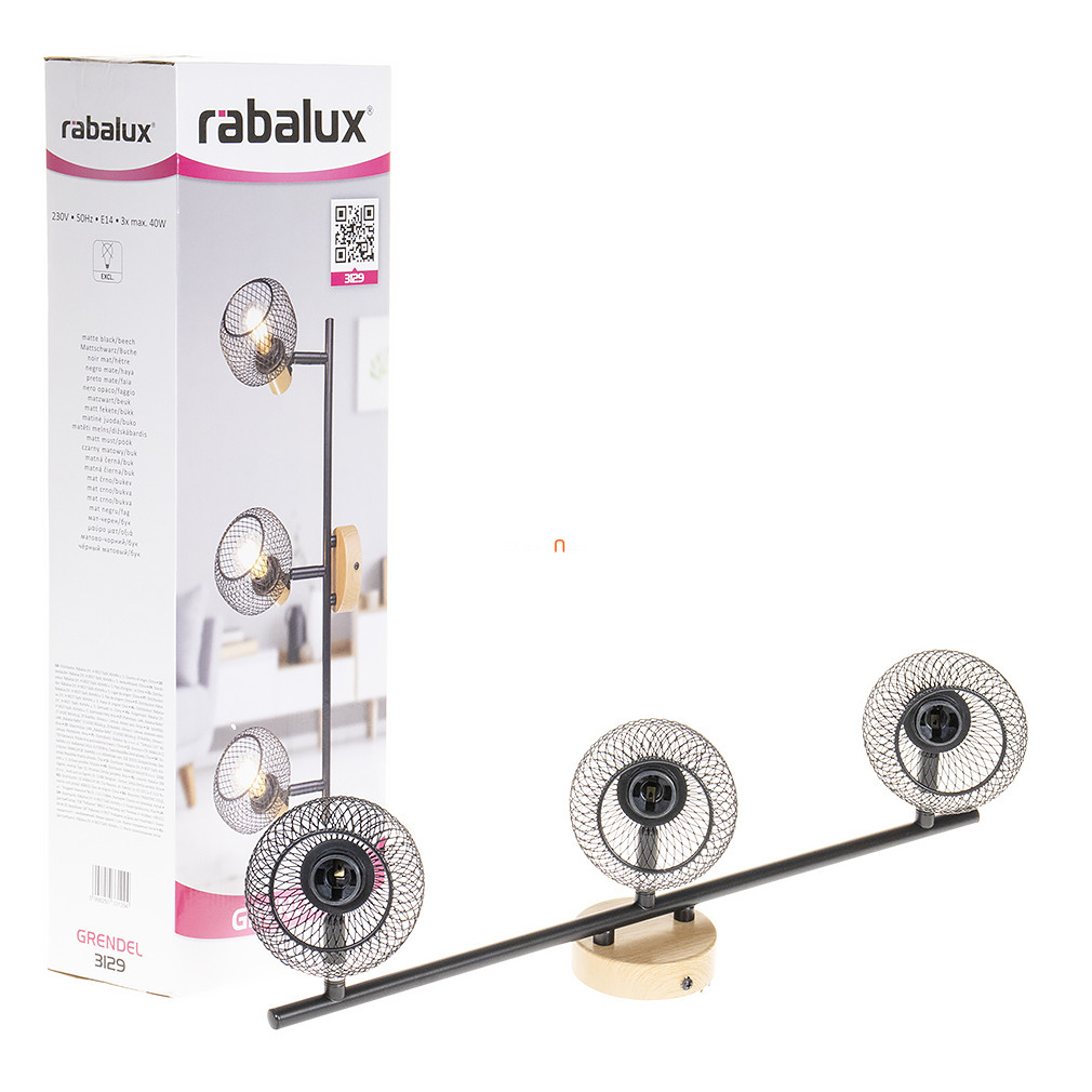 A Grendel Rábalux 3129 spot lámpa vintage stílusú mennyezeti világítótest, amely fekete színű necc búrával és fa elemekkel rendelkezik. A lámpatest három darab E14 foglalattal szerelt, amelyekbe cserélhető fényforrás helyezhető, így a fényáram, a fényszín és a színhőmérséklet a választott izzótól függően alakítható. A lámpatest teljesítménye szintén a behelyezett fényforrástól függ. A lámpa nem szabályozható, IP20 védettséggel rendelkezik, így beltéri használatra alkalmas. A termék méretei: hossza 530 mm, szélessége 145 mm, magassága 175 mm. A lámpa tömege 0,66 kg. A lámpatest anyaga fém és fa, amely stabilitást és esztétikus megjelenést biztosít. A csomagolás méretei: 55 mm szélesség, 180 mm hosszúság, 110 mm magasság. A termék nem tartalmaz fényforrást, azt külön szükséges beszerezni.