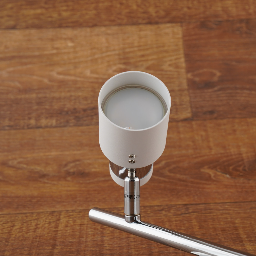 A Davida fehér-krómszínű, két foglalattal rendelkező spotlámpa elegáns és praktikus választás, amely remekül alkalmazható különböző belső terek megvilágítására. Letisztult dizájnjával és minőségi anyaghasználatával nemcsak esztétikus, hanem funkcionálisan is kiválóan teljesít. Ez a lámpatest ideális megoldást nyújt, ha olyan világítást keresel, amely modern, ugyanakkor sokoldalú és időtálló.A lámpatest egyik legfontosabb tulajdonsága a két különálló GU10-es foglalat, amelyek lehetővé teszik, hogy a fényt több irányba irányítsd. A lámpafejek állíthatósága nagy rugalmasságot kínál, hiszen egyszerre tudsz egy adott pontra fókuszálni, például egy kép vagy bútordarab kiemelésére, miközben a másik foglalatot a helyiség általános megvilágítására használhatod. Ez a kialakítás ideális olyan helyeken, ahol különböző világítási igények merülnek fel, például nappaliban, konyhában vagy akár folyosón.A fehér és króm színkombináció modern és esztétikus megjelenést kölcsönöz a lámpatestnek. A fehér felület tisztaságot és egyszerűséget sugároz, míg a króm részletek elegáns kontrasztot adnak, így a lámpa szinte bármilyen enteriőrbe tökéletesen illeszkedik. Ez a színösszeállítás különösen jól passzol a mai minimalista vagy skandináv stílusú lakberendezési trendekhez, de egy klasszikusabb környezetben is jól mutat.A GU10-es foglalatok kompatibilisek a piacon kapható számos LED fényforrással, így könnyen személyre szabhatod a lámpa fényerejét és színhőmérsékletét. Ez különösen hasznos, ha eltérő hangulatokat szeretnél teremteni az egyes helyiségekben. Melegfehér LED fényforrással kellemes és barátságos légkört varázsolhatsz, míg hidegfehér izzókkal tiszta, munkára alkalmas világítást biztosíthatsz.A lámpatest maximális teljesítménye foglalatonként 50 watt, ami bőven elegendő ahhoz, hogy hatékonyan megvilágítsa a teret. Az energiatakarékos LED technológia alkalmazásával nemcsak a villanyszámlát csökkentheted, hanem a környezetvédelemhez is hozzájárulhatsz. A LED-ek hosszú élettartama és alacsony energiafogyasztása garantálja, hogy a lámpa hosszú távon is gazdaságos választás marad.A Davida spotlámpa telepítése egyszerű, a gyártó által biztosított szerelési útmutatónak köszönhetően. A lámpatest precízen kialakított rögzítési pontjai lehetővé teszik a gyors és biztonságos felszerelést, legyen szó mennyezeti vagy fali elhelyezésről. Ez különösen előnyös, ha magad szeretnéd felszerelni a lámpát, anélkül hogy szakember segítségét kellene igénybe venned.A lámpatest tartós és minőségi anyagokból készült, ami hosszú élettartamot és megbízhatóságot biztosít. A fehér-króm felület könnyen tisztán tartható, ellenáll a kisebb szennyeződéseknek és karcolásoknak, így a lámpa megjelenése hosszú időn át esztétikus marad. Ez különösen fontos olyan helyeken, ahol a lámpa gyakran van kitéve por- vagy zsírszennyeződésnek, például konyhákban vagy étkezőkben.A lámpatest két foglalata elegendő fényt biztosít kisebb helyiségek általános megvilágítására, de kiegészítő világításként is jól működik nagyobb terekben. Például a nappaliban hangulatvilágításként használható, miközben egy fő mennyezeti lámpa biztosítja az általános világítást. A két foglalat rugalmassága lehetővé teszi a különböző fényhatások kombinálását, így az enteriőr egyedibbé és személyre szabottabbá válhat.A Davida fehér-krómszínű, két foglalattal rendelkező spotlámpa egy praktikus és elegáns világítástechnikai eszköz, amely modern megjelenést és sokoldalú használhatóságot kínál. Ha fontos számodra a minőség, az energiatakarékosság és a könnyű kezelhetőség, ez a lámpatest ideális választás lehet otthonod vagy akár irodád számára. A két állítható foglalatnak köszönhetően egyedi világítási megoldásokat hozhatsz létre, amelyek nemcsak funkcionálisak, hanem esztétikailag is kiemelkedőek.