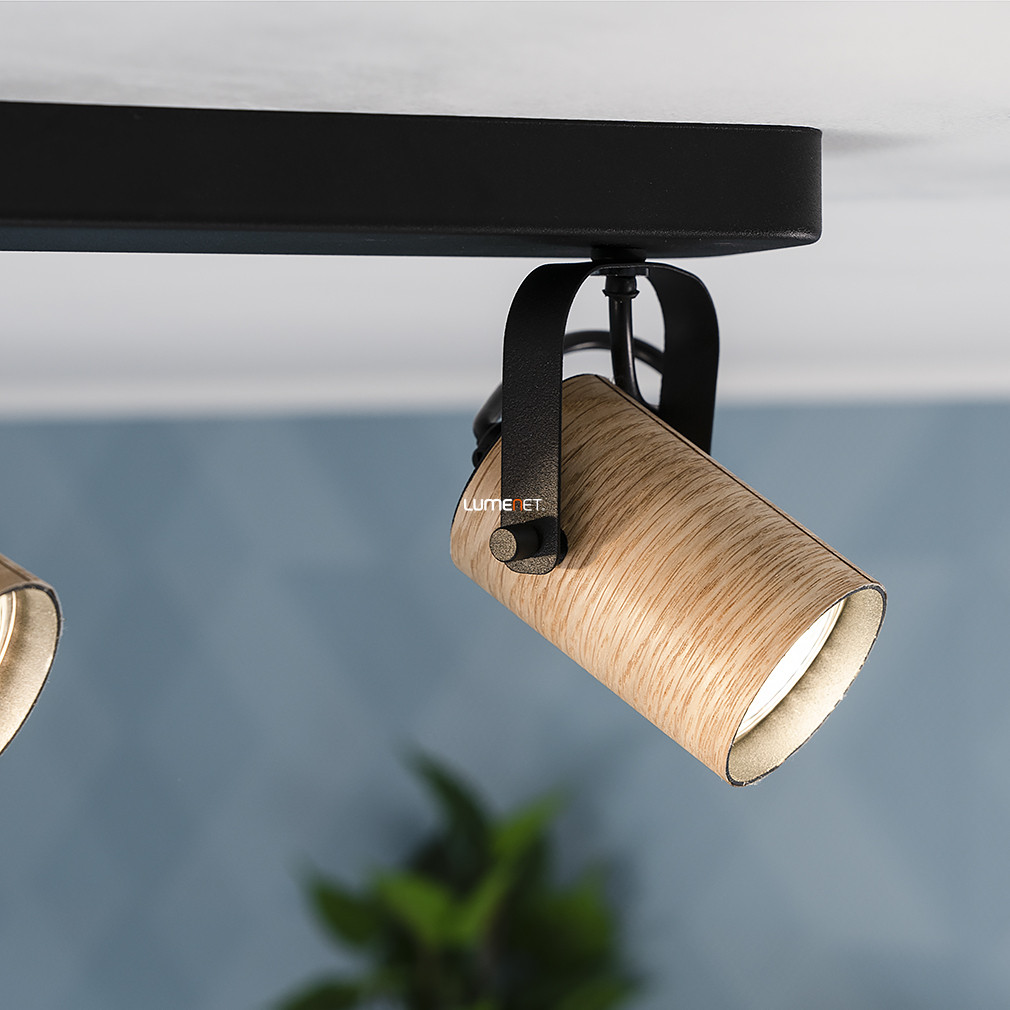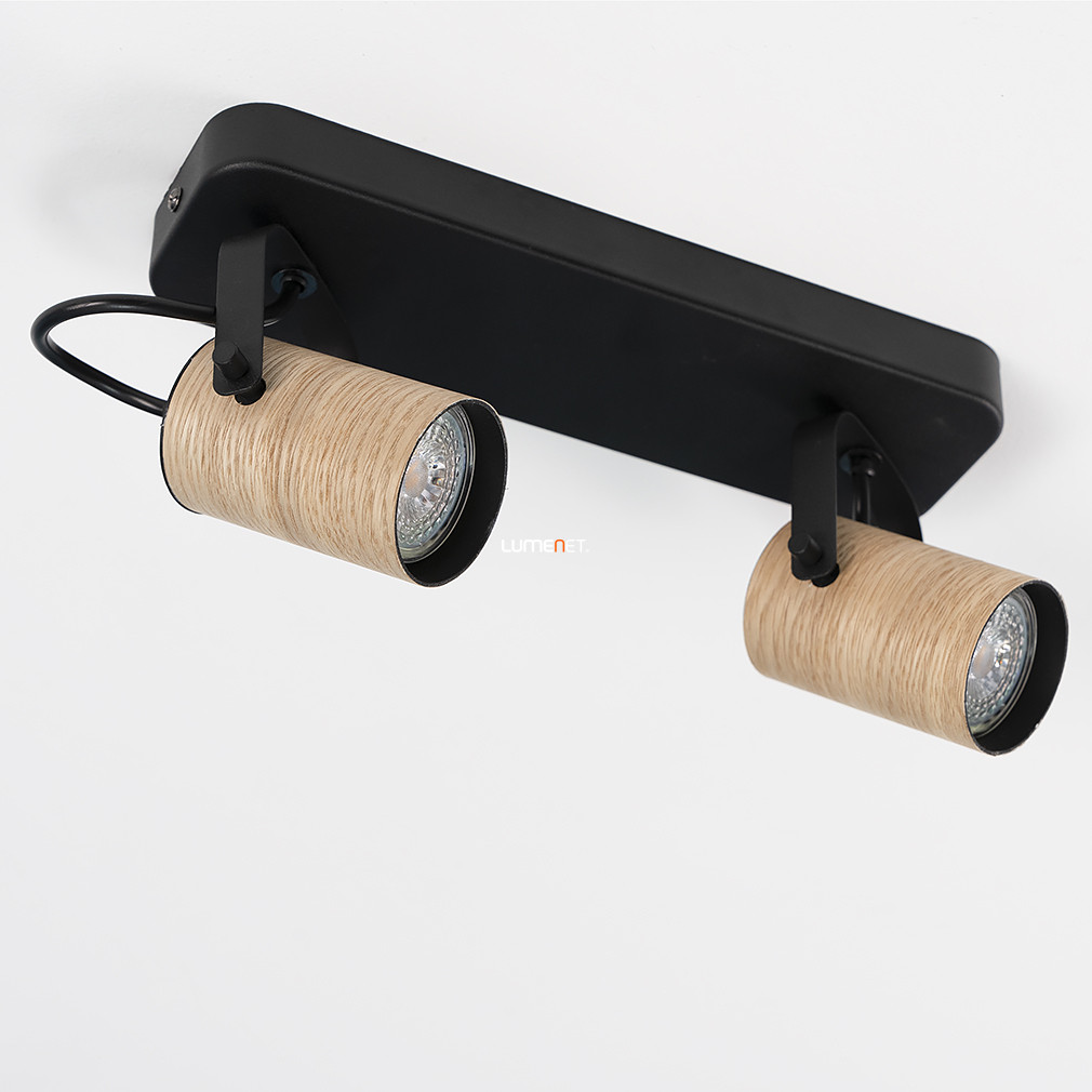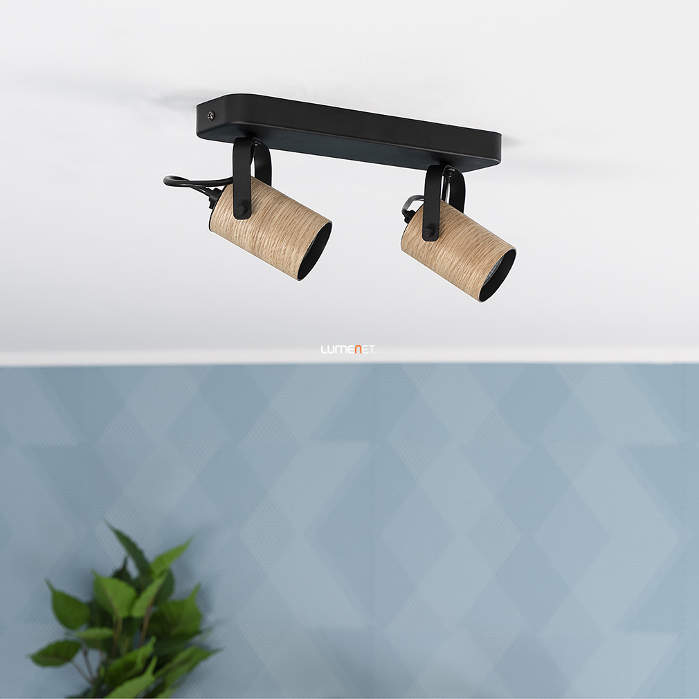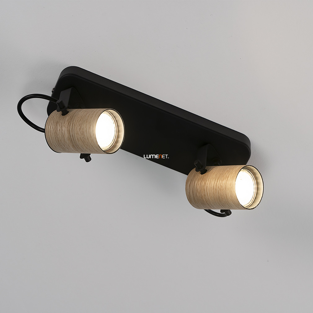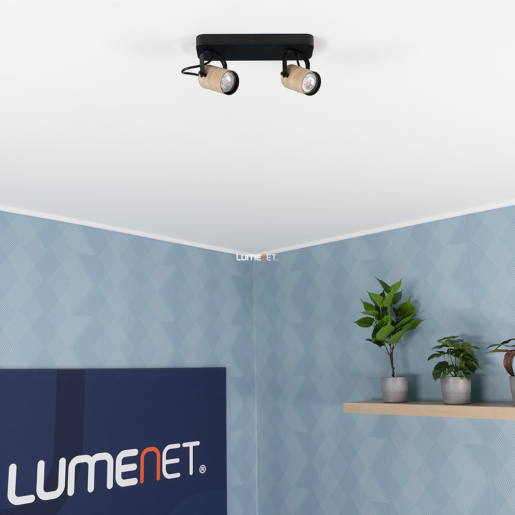 A Spot lámpa két foglalattal natúr-fekete kivitelben, Cayuca Eglo 900437 modell, skandináv stílusban készült mennyezeti lámpatest, amely két darab GU10 foglalattal rendelkezik. A lámpatest anyaga acél, színe fekete és fa kombinációja, amely modern és természetes megjelenést kölcsönöz a helyiségnek. A termék méretei: 280 mm hosszúság, 100 mm szélesség és 120 mm magasság. A lámpa IP20-as védettségi szinttel bír, így beltéri használatra alkalmas. A csomag tartalmazza a fényforrást, amely cserélhető, így a fényáram, fényszín és színhőmérséklet igény szerint választható. A világítótest tömege 2,0 kg, logisztikai kódja 900437, gyártója az EGLO.