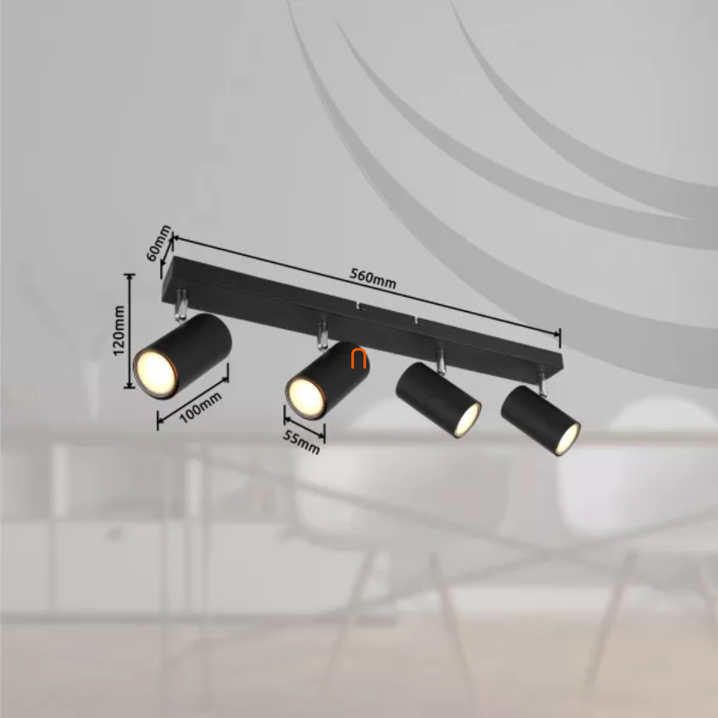 A Robby Globo 57911-4B spot lámpa modern, matt fekete és króm színben készül, négy GU10 foglalattal rendelkezik, amelyek cserélhető fényforrásokkal szerelhetők fel. A lámpatest fém anyagból készült, mely biztosítja a tartósságot és a stabilitást. A termék 230 V névleges feszültséggel működik, IP20 védettségi besorolással rendelkezik, így beltéri használatra alkalmas. A lámpatest méretei: 560 mm hosszúság, 60 mm szélesség és 120 mm magasság. A csomagolás mérete 7 cm széles, 13 cm hosszú és 59 cm magas. A fényforrás nem tartozék, így a felhasználó szabadon választhatja meg a kívánt fényerőt és színhőmérsékletet. A termék tömege 1,1 kg, gyártója a Globo.
