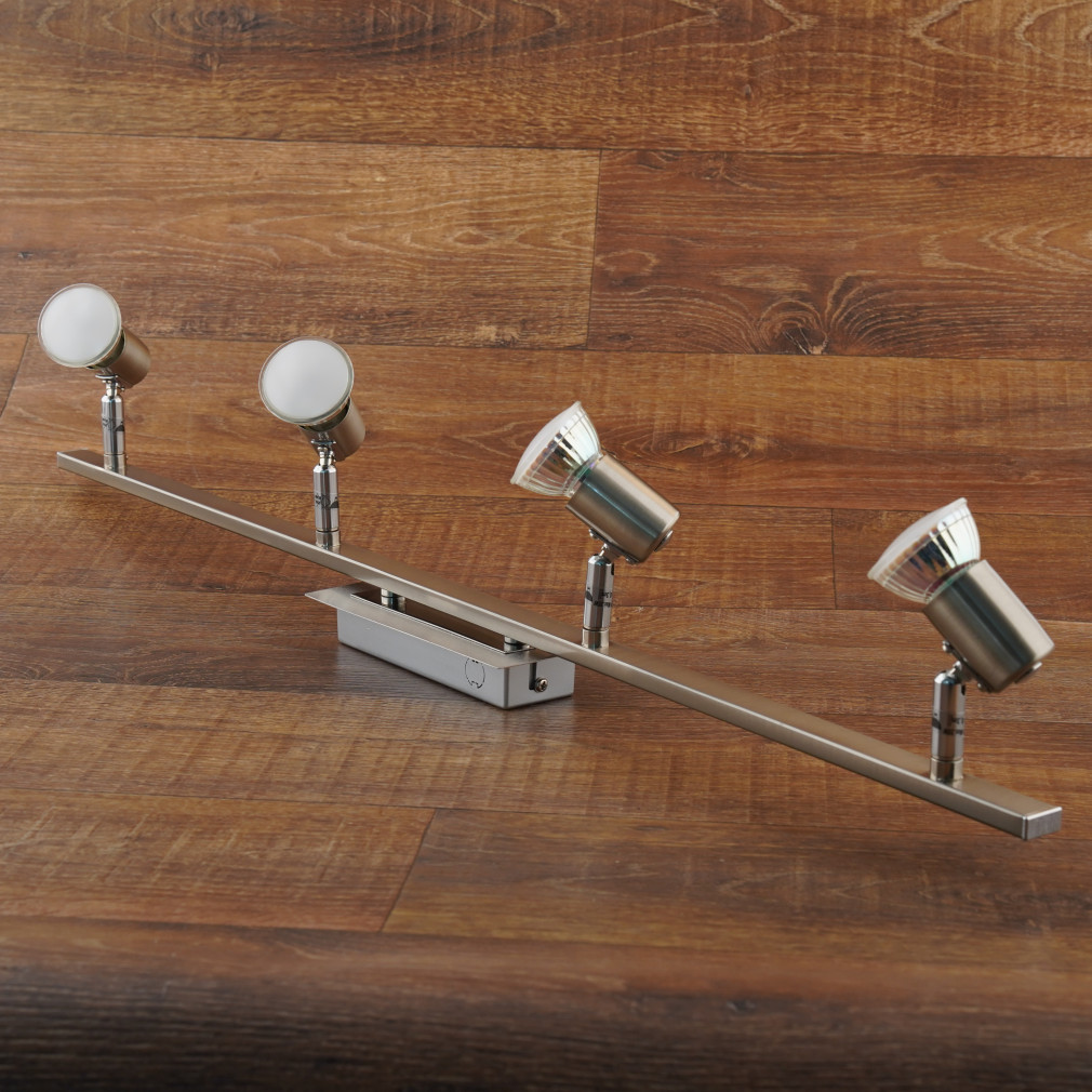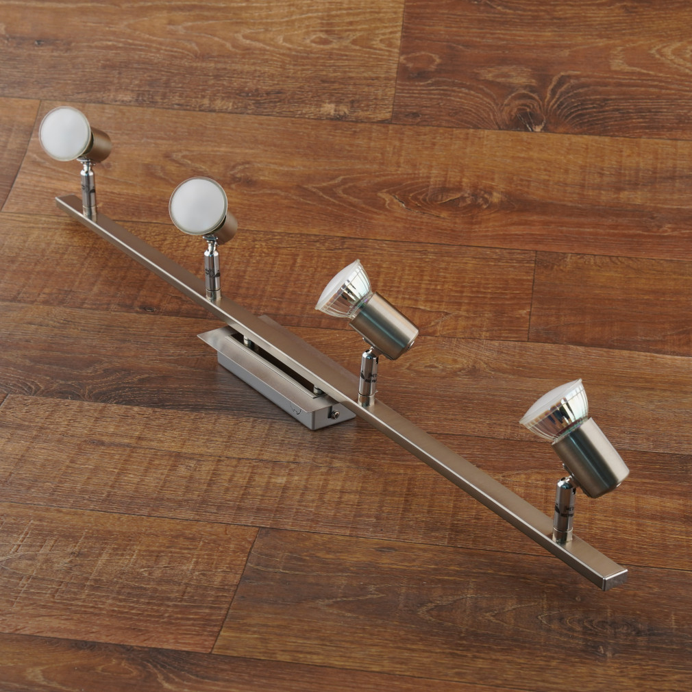 A Rottelo Eglo 90917 spot lámpa négy GU10-es foglalattal rendelkezik, amely modern stílusú lakásvilágítási megoldást kínál. A lámpatest anyaga acélból és nikkelből készült, ezüstszínű felülettel. Teljes hossza 780 mm, szélessége 70 mm, ami ideális elosztást biztosít a fényforrások számára. A lámpatest IP20 védettségi szinttel rendelkezik, így beltéri használatra tervezett. A csomag négy darab cserélhető fényforrást tartalmaz, melyek GU10-es foglalatba illeszthetők, így a fényáram, fényszín, teljesítmény és színhőmérséklet igény szerint módosítható. A termék tömege 1,42 kg. A Rottelo Eglo 90917 mennyezeti spot lámpa kiválóan alkalmas többirányú megvilágítás kialakítására modern enteriőrökben.