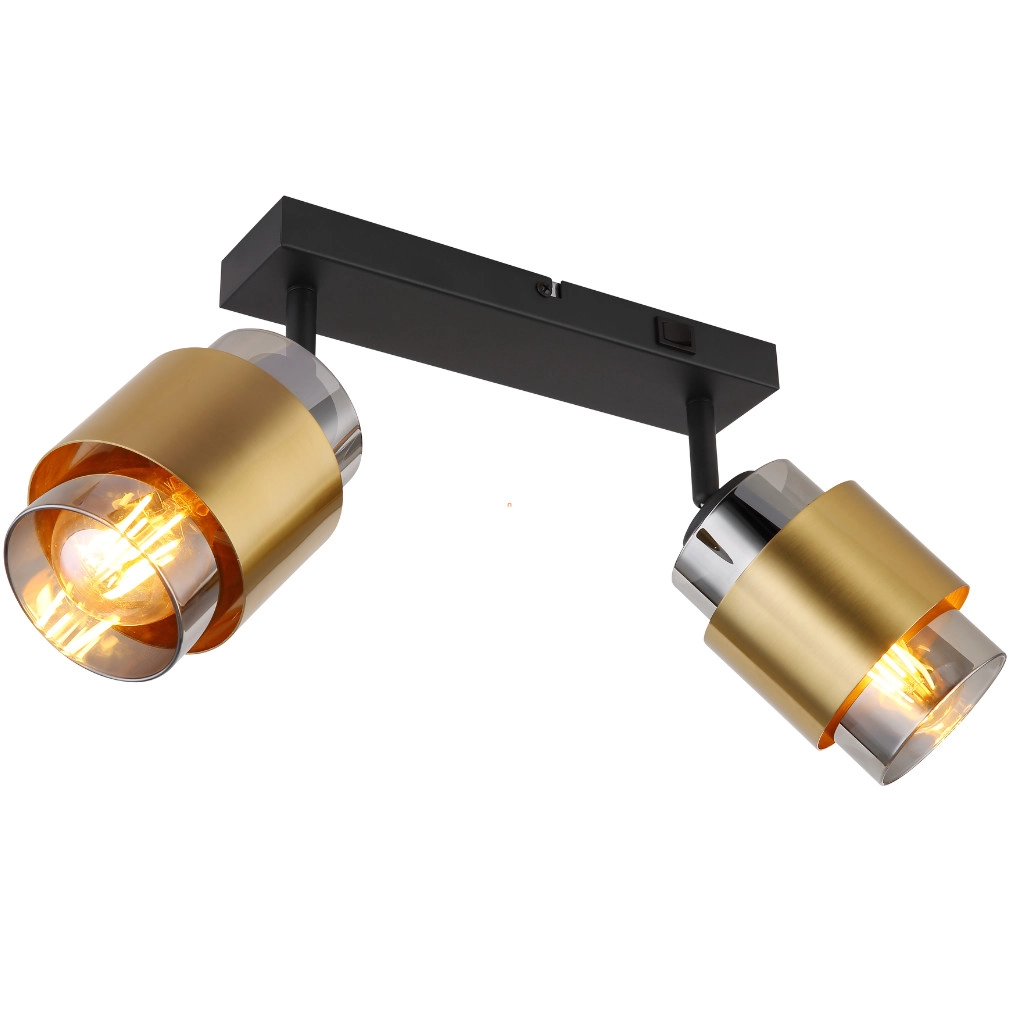 A Milley Globo 15560-2 spot lámpa sárgaréz színben modern kialakításával és letisztult formavilágával mennyezeti világításként alkalmazható lakóterekben. A lámpatest két darab E27 foglalattal rendelkezik, melyekbe cserélhető fényforrás helyezhető, így a fényáram, fényszín, teljesítmény és színhőmérséklet igény szerint alakítható. A lámpa matt fekete és füstszínű üveg, valamint fém anyaghasználatával elegáns megjelenést biztosít. A termék IP20 védettségi szinttel rendelkezik, beltéri használatra alkalmas. A lámpa méretei: hosszúság 260 mm, szélesség 100 mm, magasság 125 mm, tömege 1,12 kg. A névleges feszültség 230 V, a csomag nem tartalmaz fényforrást. A gyártó a Globo., a logisztikai kód 15560-2.