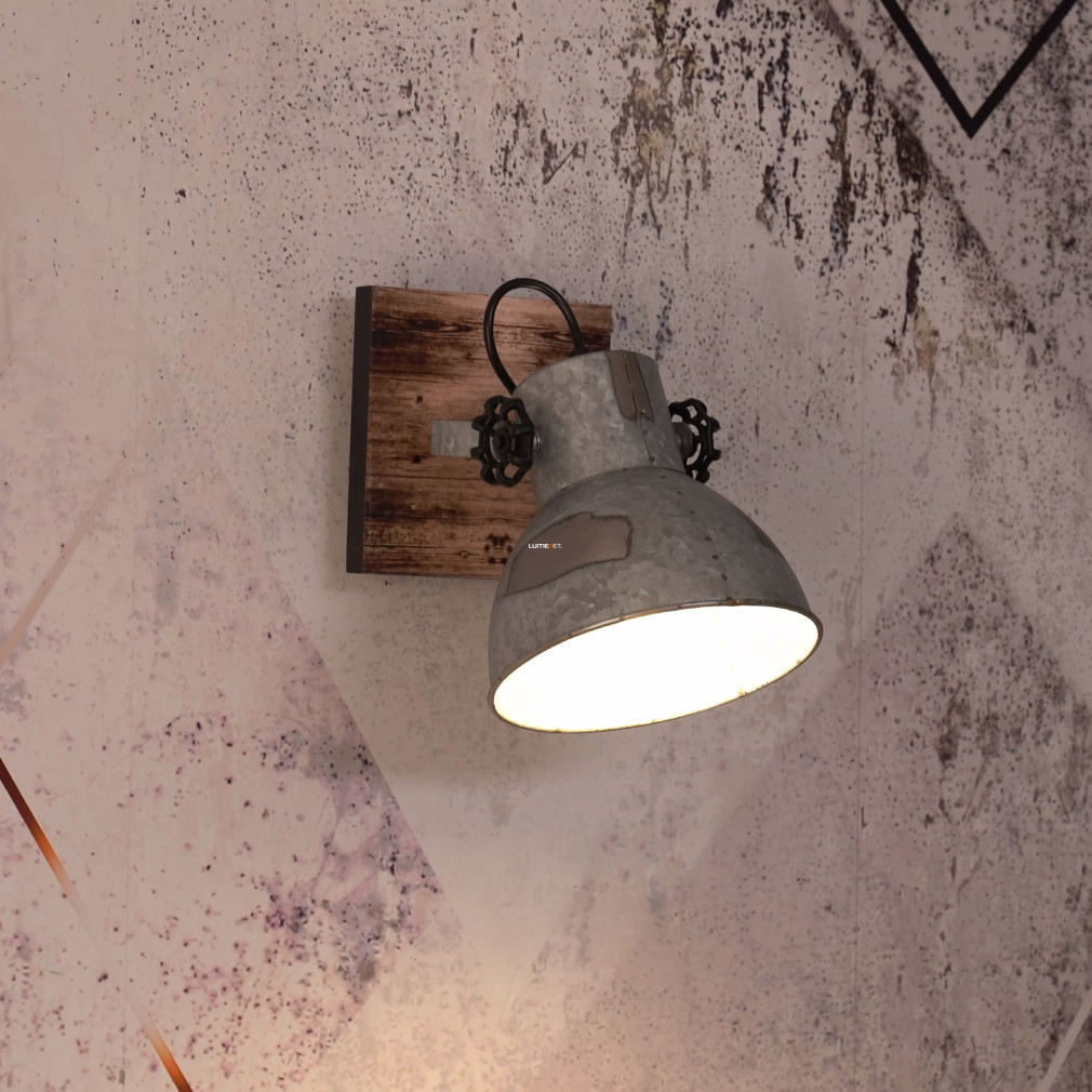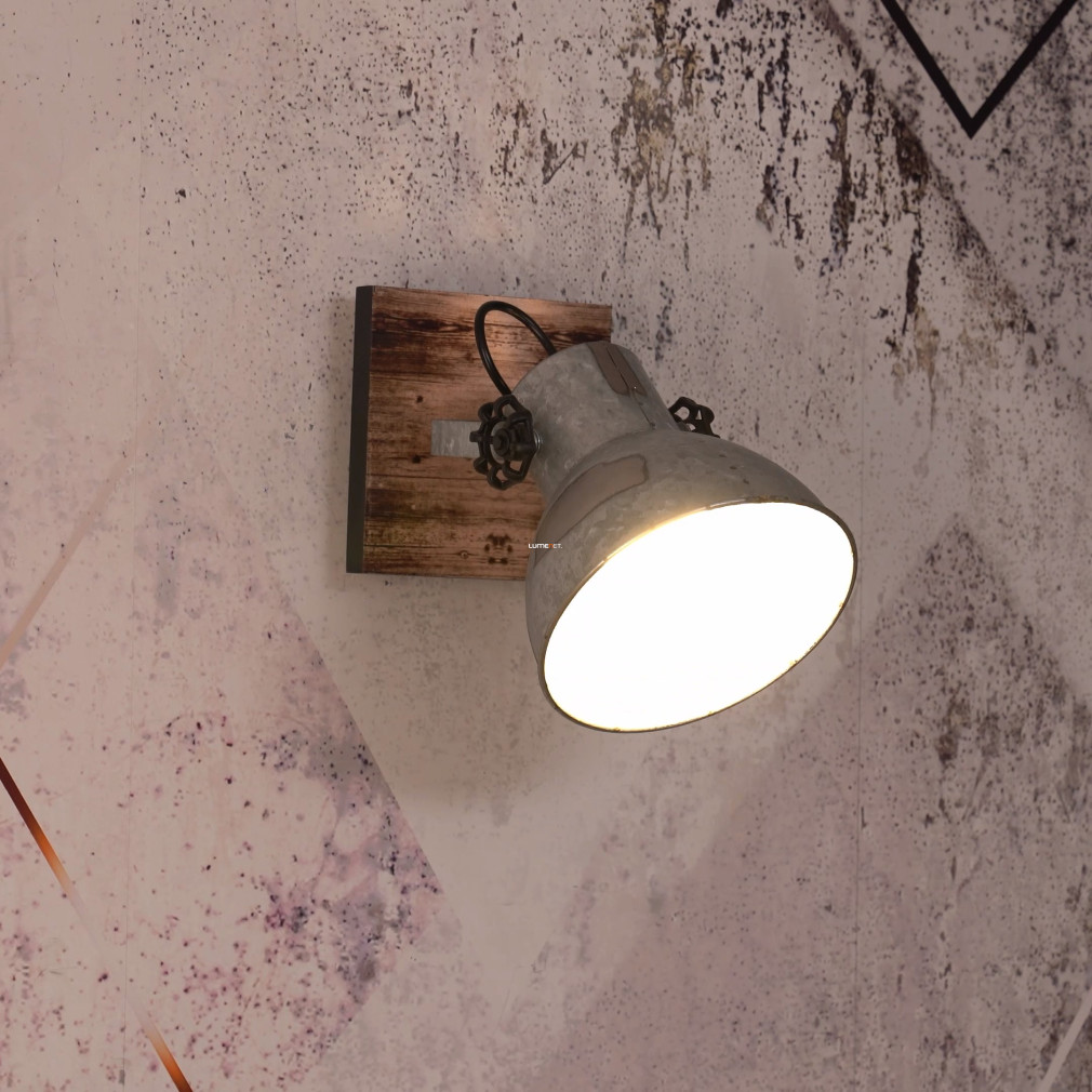 A Barnstaple Eglo 49648 spot lámpa vintage stílusú, szürke-antikolt kivitelben készül, acél és fa anyagok felhasználásával. A lámpatest egy E27-es foglalattal rendelkezik, amelybe cserélhető fényforrás helyezhető, így a fényáram, fényszín, teljesítmény és színhőmérséklet a választott izzótól függ. A lámpa tömege 1,16 kg, mérete 160 mm hosszúságú és 160 mm szélességű, védettségi besorolása IP20. A csomagolás méretei: 18 cm széles, 19 cm hosszú és 29 cm magas. A termék nem tartalmaz fényforrást, és főként lakásvilágítási célokra, fali lámpaként alkalmazható. Gyártója az EGLO.