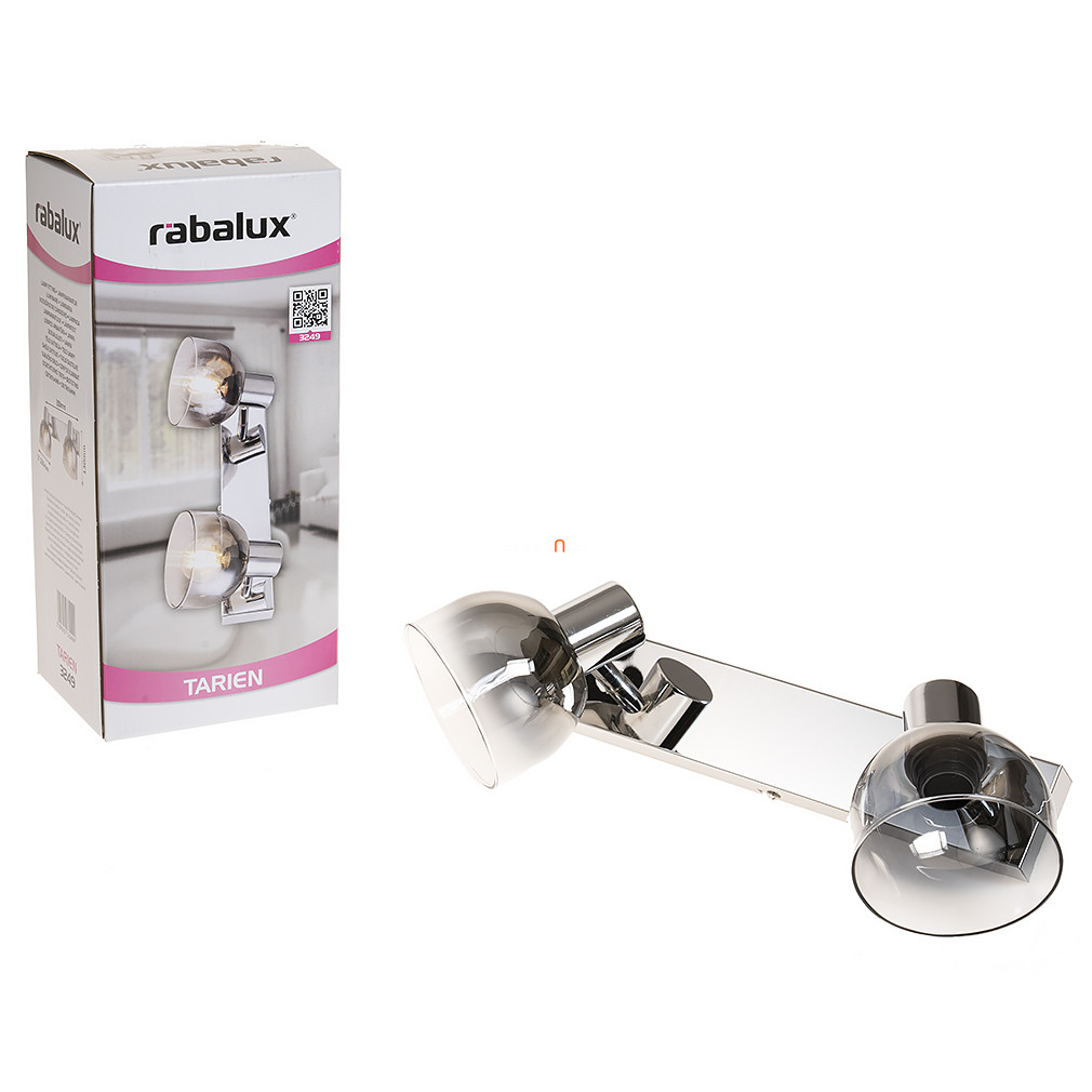 A Tarien Rábalux 3249 spot lámpa egy modern stílusú mennyezeti világítótest, amely két darab E14-es foglalattal rendelkezik. A lámpatest anyaga fém és üveg, felülete króm és füstszínű árnyalatokban jelenik meg. A lámpa állítható kivitelű, így a fény iránya könnyedén szabályozható a helyiség igényei szerint. A termék IP20 védettséggel bír, így beltéri használatra alkalmas. A lámpatest méretei: 300 mm hosszúság, 130 mm szélesség és 150 mm magasság. A lámpa fényforrást nem tartalmaz, cserélhető fényforrás használata ajánlott, amelynek színhőmérséklete, teljesítménye és fényszíne igény szerint választható. A termék tömege 0,5 kg. A Tarien Rábalux 3249 spot lámpa nem szabályozható, és a Rábalux gyártja.