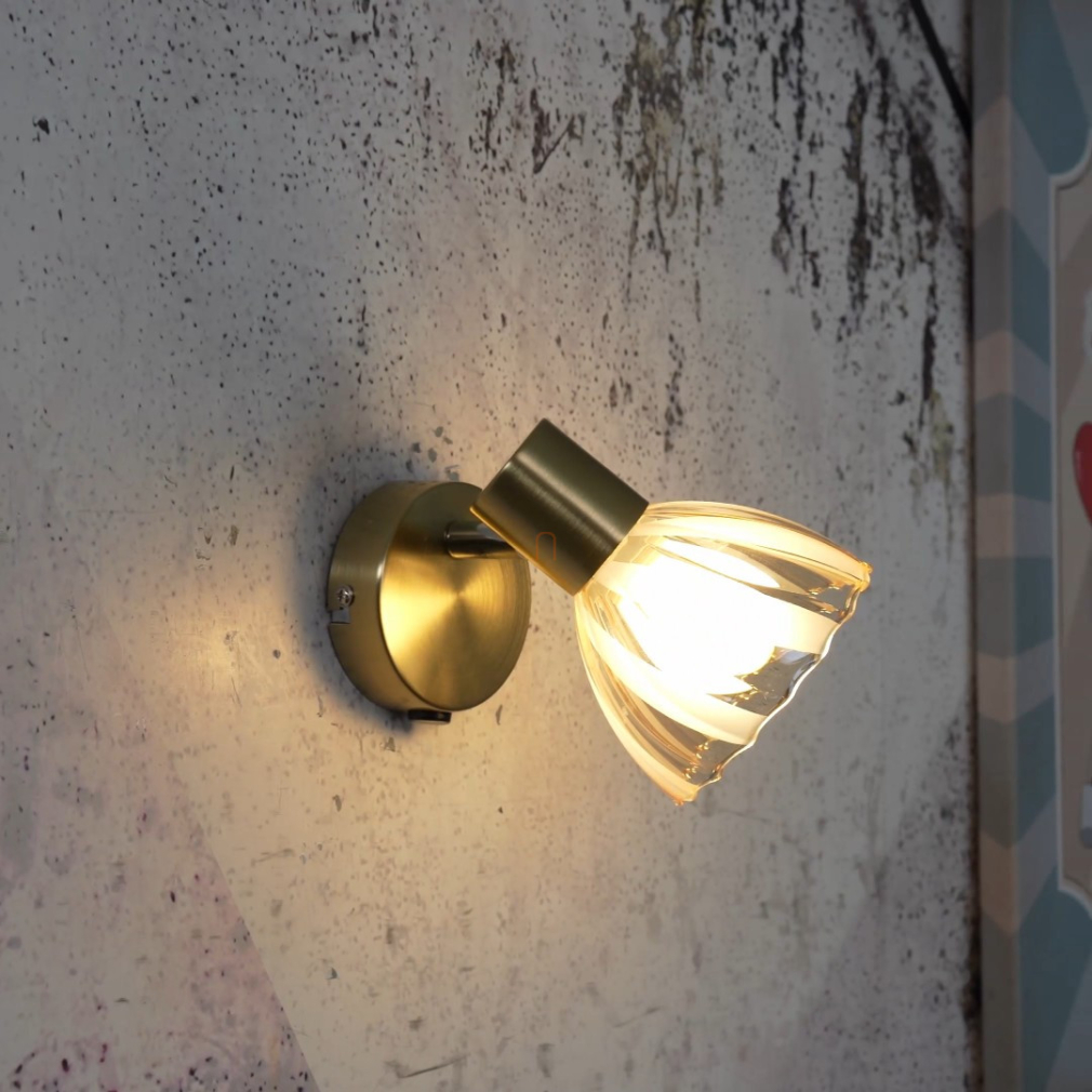 Fali spot lámpa borostyán színben, csavart-barázdált üveg - Zachery Globo 54315M-1