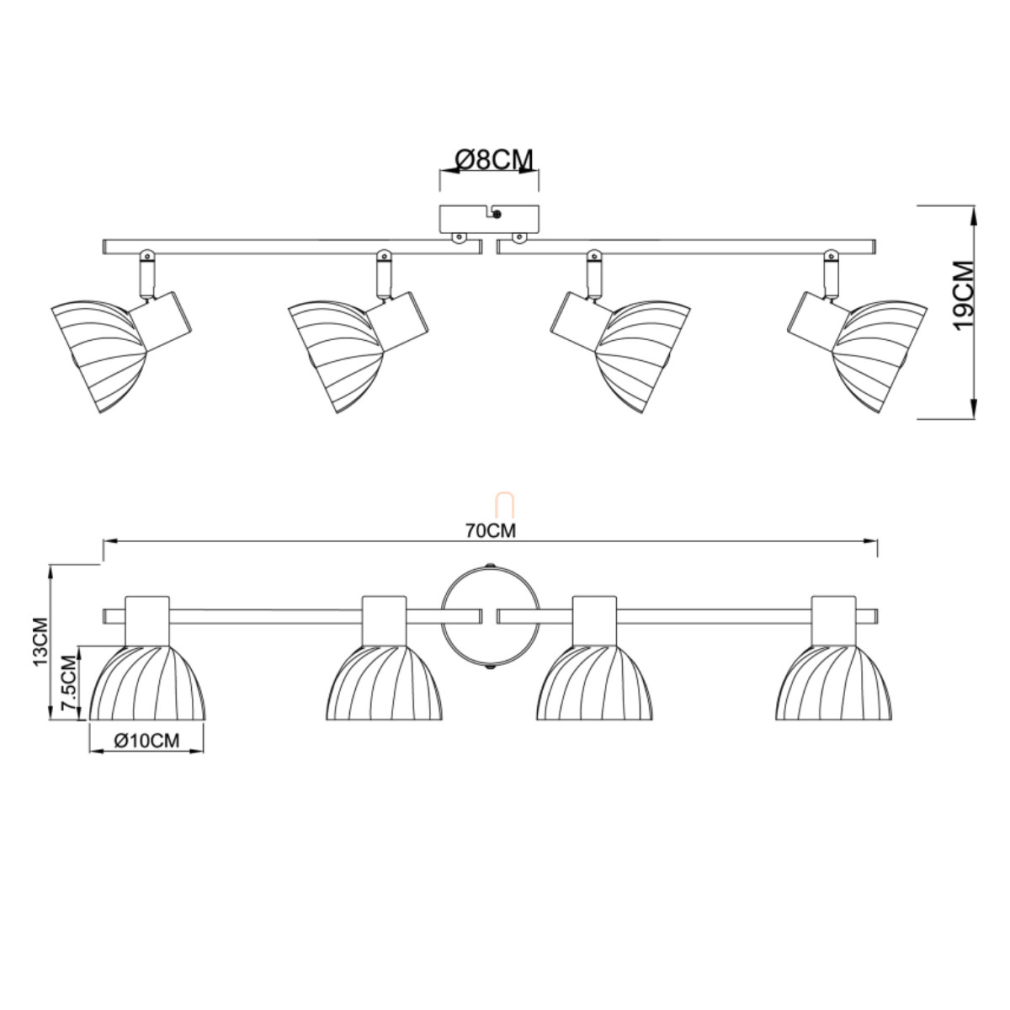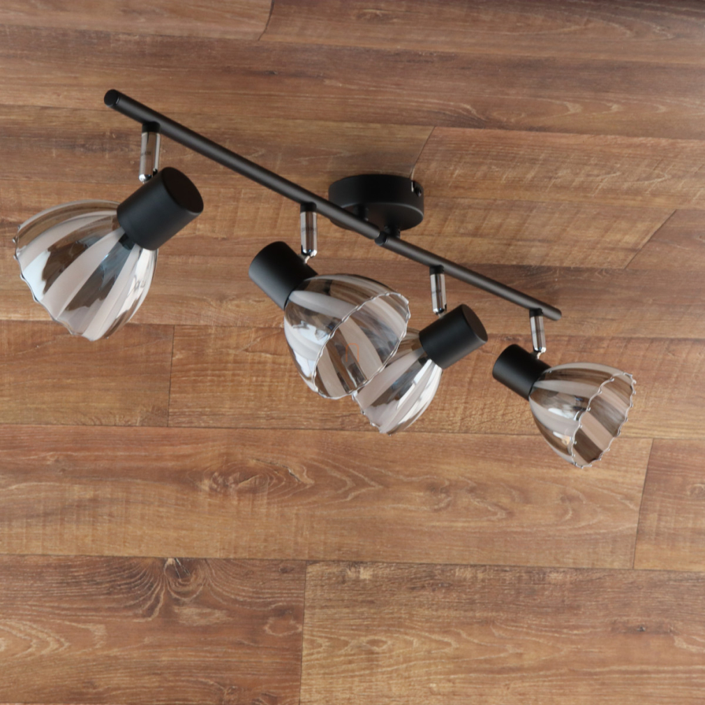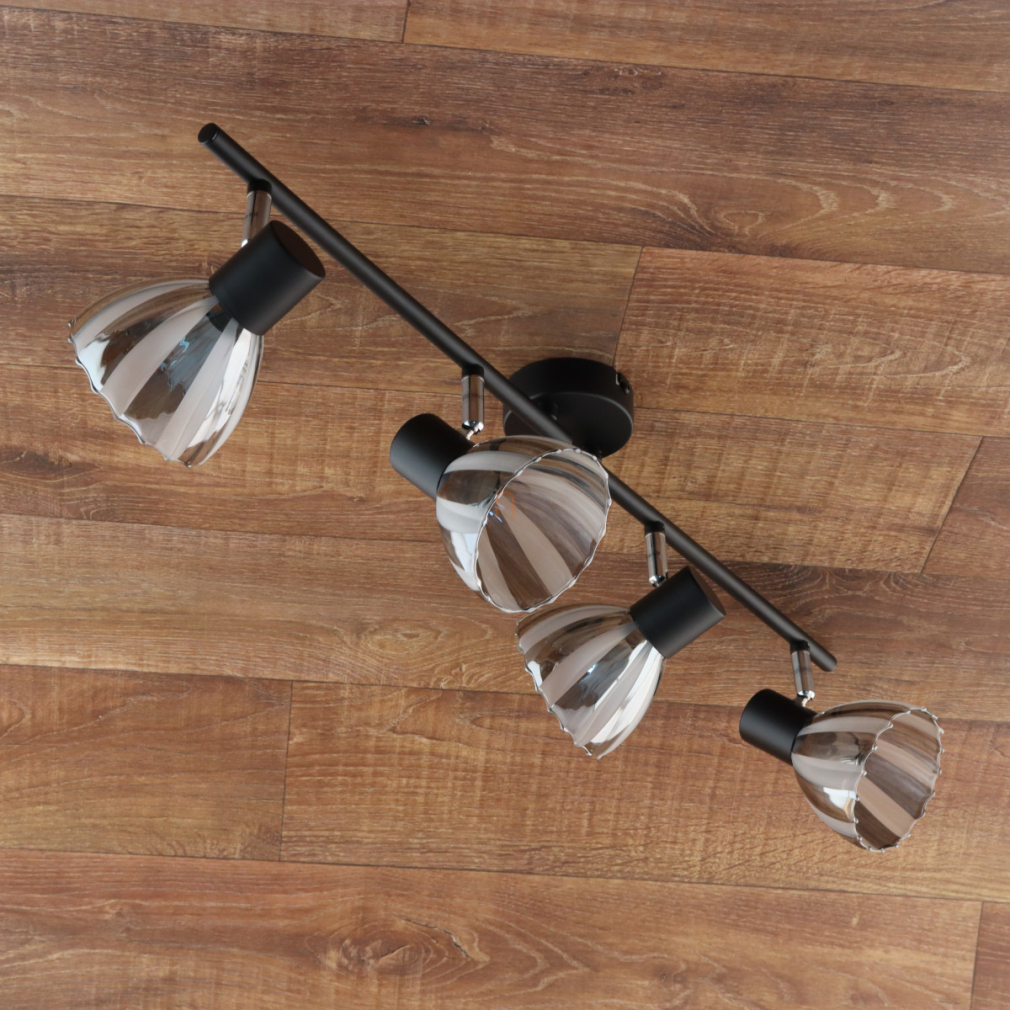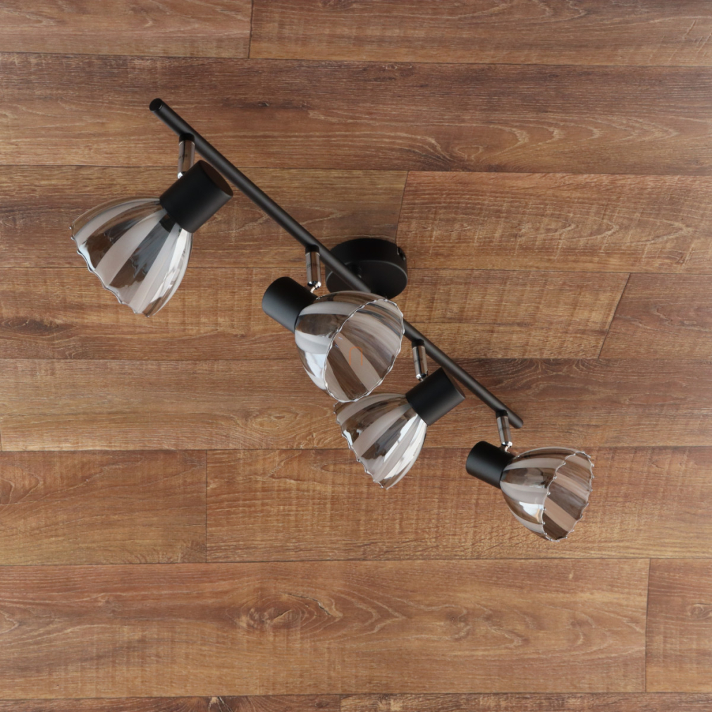 Spot lámpa füstszínű csavart-barázdált üveg, 4 foglalattal - Zachery Globo 54315S-4
