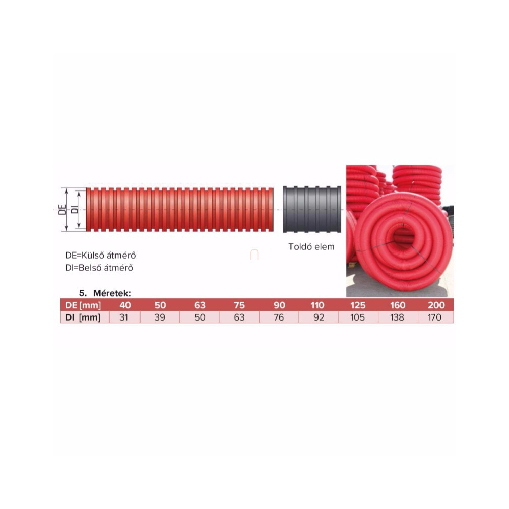 \nNagysűrűségű polietilénből (PEHD), villamos és távközlési kábelek föld alatti védelmére.