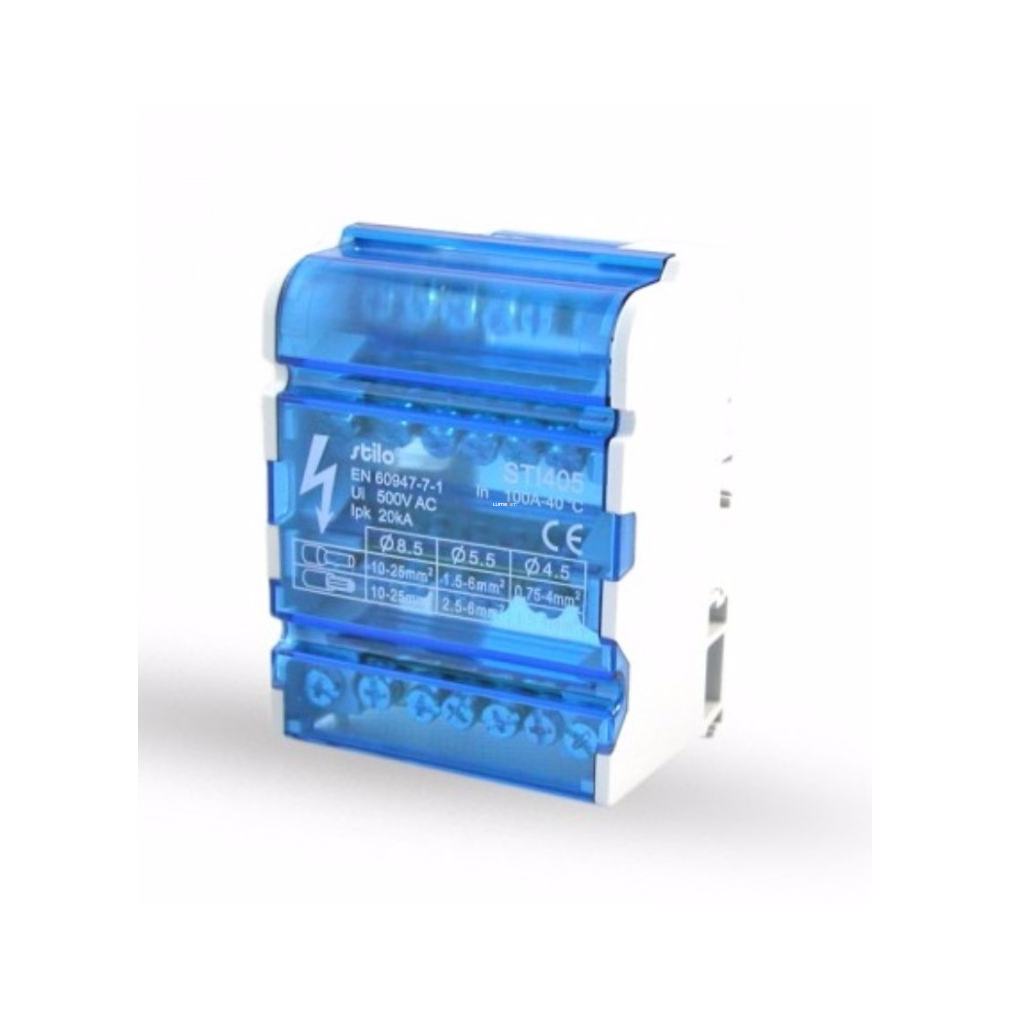 Stilo elosztóblokk 1- 6x4/500V/100A-4 pólus fővezeték sor. - STI405