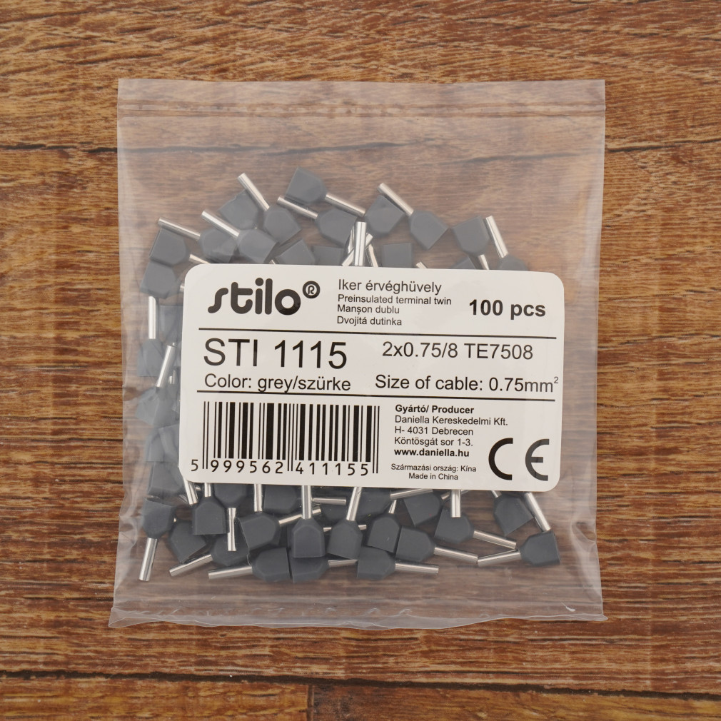 Stilo érvéghüvely iker 2* 0,75/ 8 szürke - STI1115