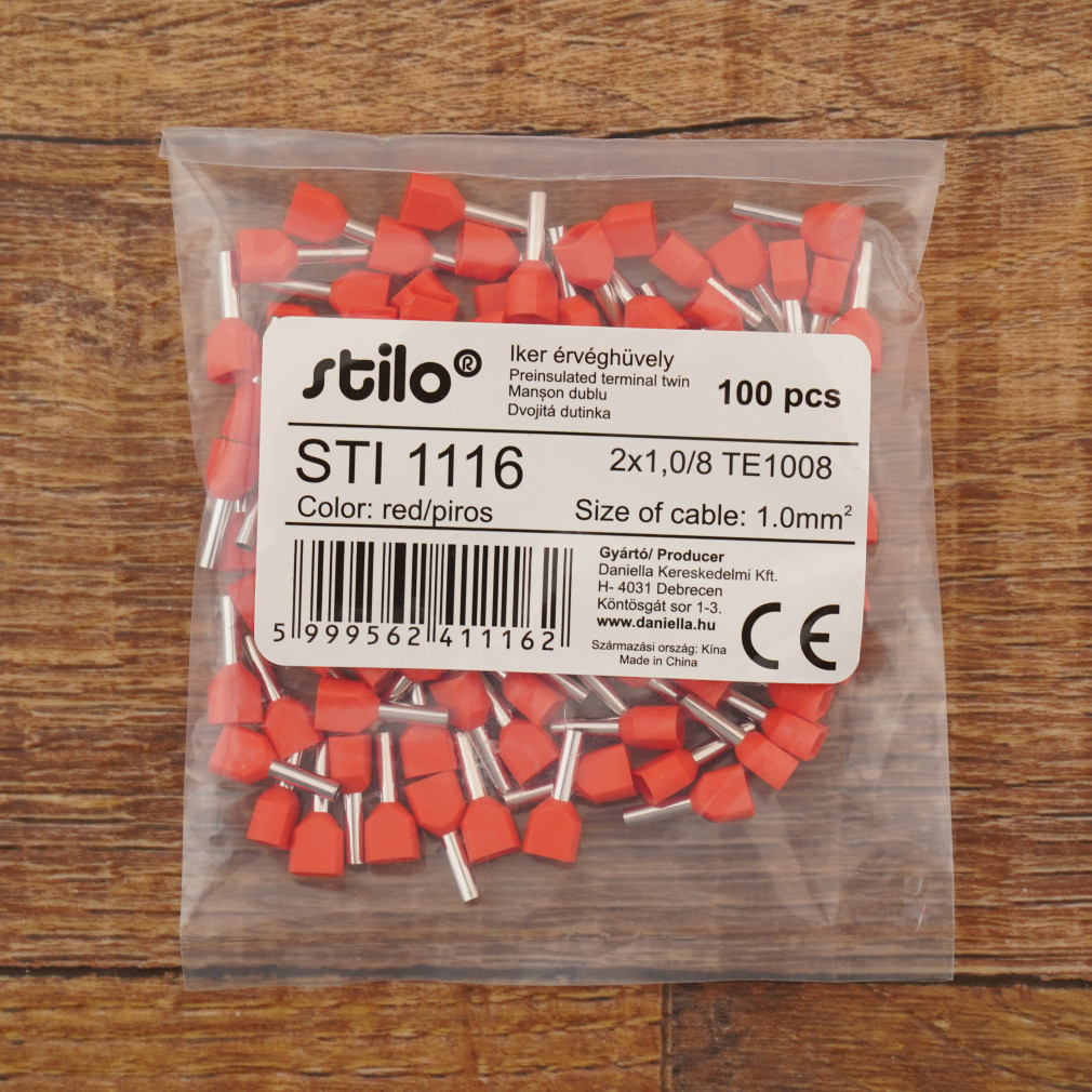 Stilo érvéghüvely iker 2* 1,0/ 8 piros - STI1116