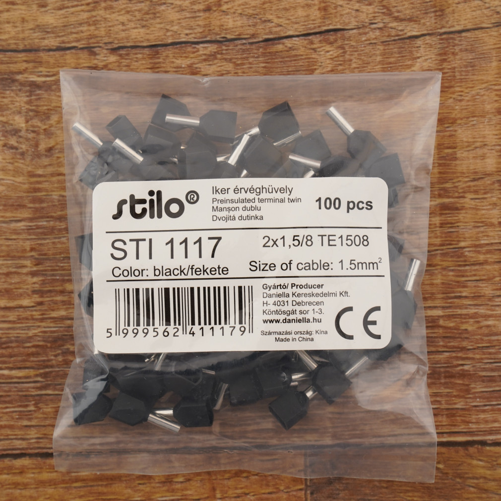 Stilo érvéghüvely iker 2* 1,5/ 8 fekete - STI1117