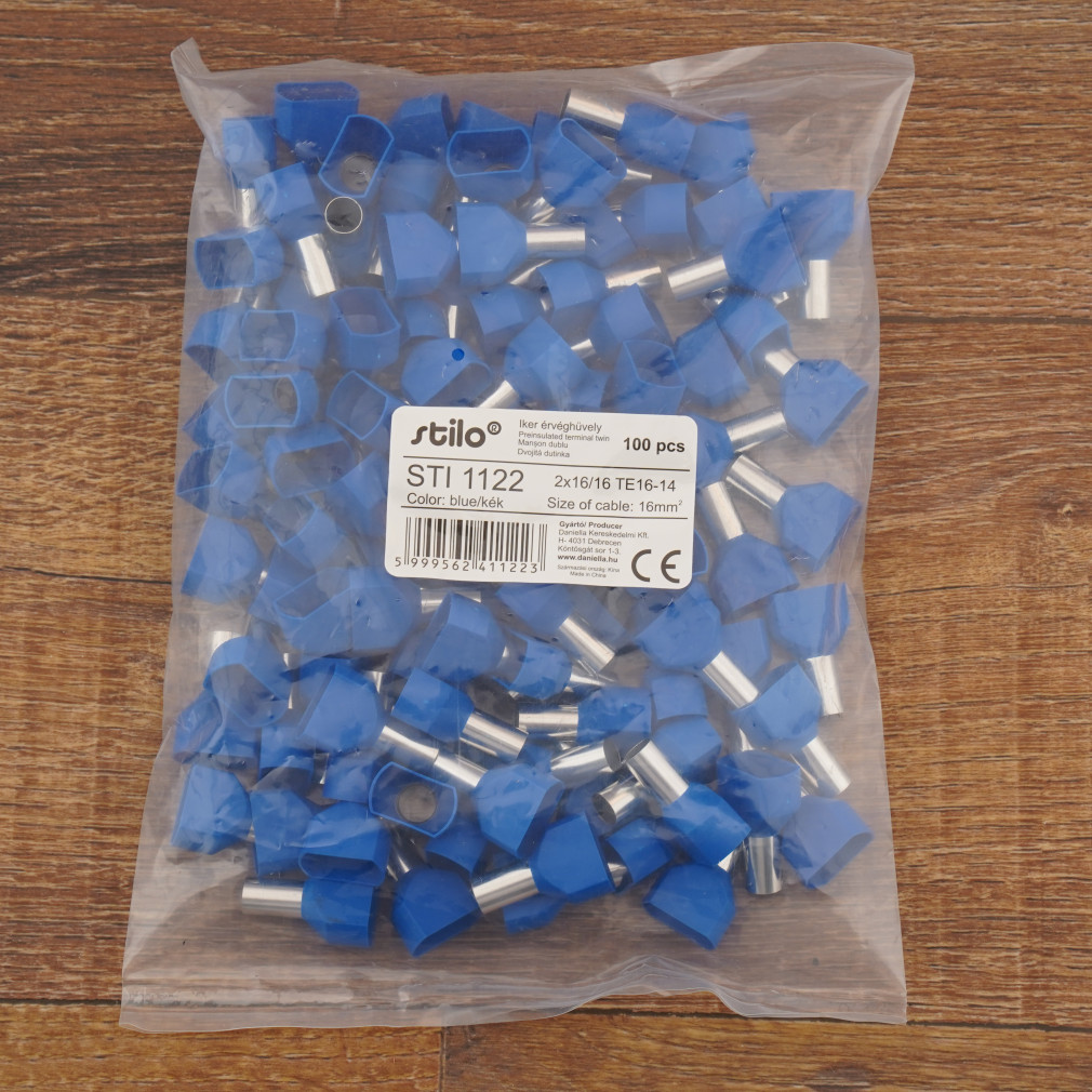Stilo érvéghüvely iker 2*16/16 kék - STI1122
