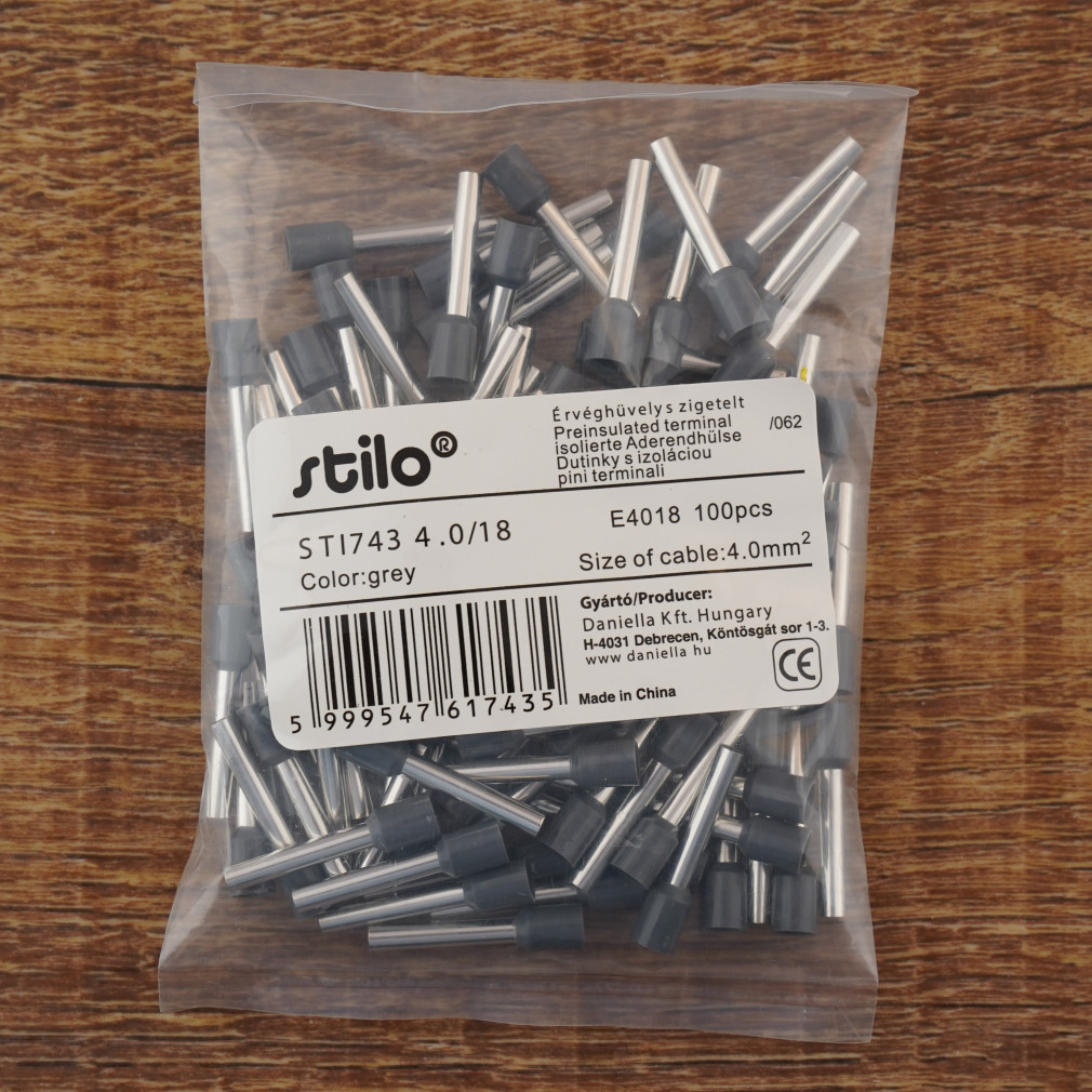 Stilo érvéghüvely szigetelt 4,0/18 szürke - STI743