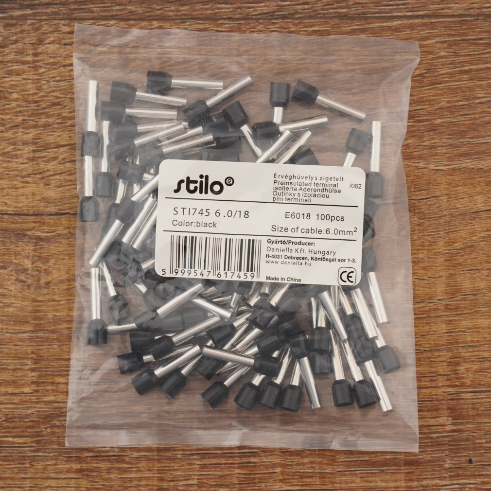 Stilo érvéghüvely szigetelt 6,0/18 fekete - STI745