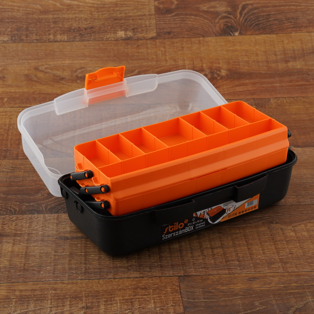 Stilo szerszámosláda kihajtható tárolókkal 14 colos átlátszó tetővel 323x161 - STI1738