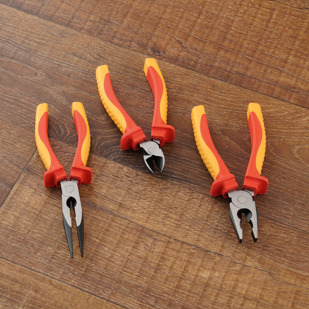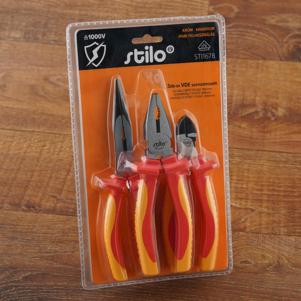 VDE szerszámszett 3db 1000V: oldalcsípő fogó 165mm, kombinált fogó 185mm, laposcsőrű fogó 200mm, STI1678 Stilo