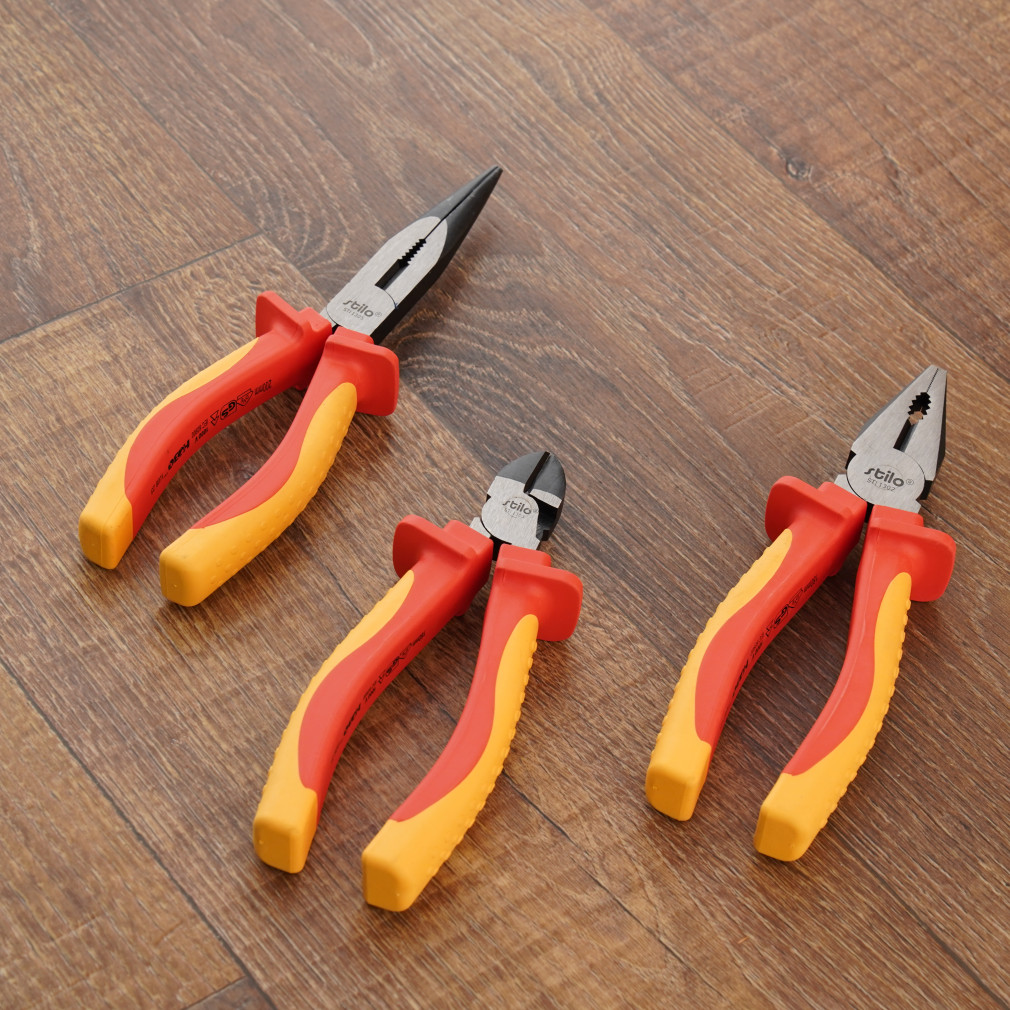 Stilo VDE szerszám szett oldalcsípő fogó 165mm, kombinált fogó 185mm, laposcsőrű fogó 200mm, 1000V, 3 darabos - STI1678