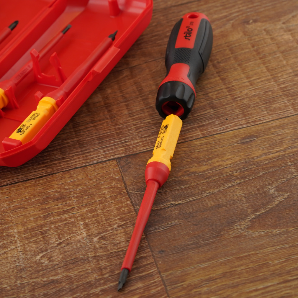 Ez a csavarhúzó készlet ideális választás minden villanyszerelő és barkácsoló számára, akik biztonságra és megbízhatóságra vágynak. Az 1000V-ig szigetelt szerszámok VDE tanúsítvánnyal rendelkeznek, garantálva a maximális védelmet elektromos munkák során. Ez a készlet nem csak a biztonságot helyezi előtérbe, hanem a kényelmes használatot is. A különböző fejek lehetővé teszik, hogy a legtöbb csavarozási feladatot könnyedén elvégezhesd, legyen szó lapos vagy PZ fejekről.