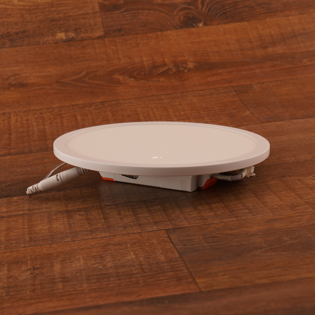 A Fueva Eglo 98868 süllyesztett LED panel egy 22 W teljesítményű, hidegfehér fényt kibocsátó világítótest, amely 2800 lumen fényáramával biztosítja a helyiségek hatékony megvilágítását. A lámpatest 4000 K színhőmérsékletű fényt ad, amely ideális funkcionális világítási célokra. A panel fehér színű, alumínium és műanyag felhasználásával készült, modern és letisztult megjelenést kölcsönözve a belső tereknek. A beépítési mélysége 70 mm, átmérője 225 mm, magassága 25 mm, így alkalmas álmennyezetekbe történő integrálásra. A beépített LED modul biztosítja a hosszú élettartamot és az energiatakarékos működést, a lámpatest IP20-as védettségi szinttel rendelkezik, ezért beltéri használatra ajánlott. A termék nem szabályozható, a csomag tartalmazza a LED fényforrást. Gyártója az EGLO.