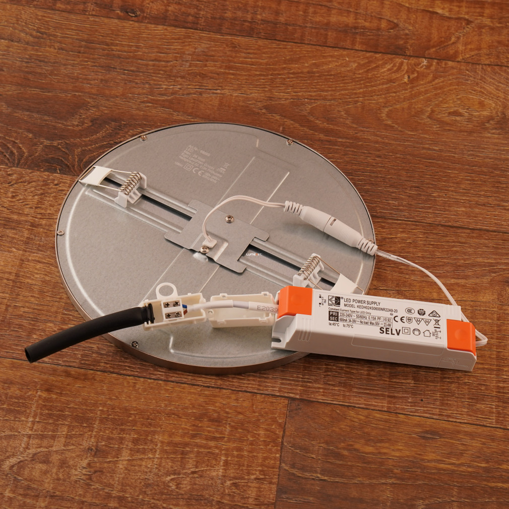 A Fueva Eglo 98869 süllyesztett LED panel 22 W teljesítményű, hidegfehér fényű világítótest, amely 2800 lumen fényáramot biztosít. A 4000 K színhőmérsékletű LED modul természetes, tiszta fényt ad, amely különösen alkalmas funkcionális világítási igényekhez. A lámpatest átmérője 225 mm, magassága 25 mm, beépítési mélysége 70 mm, így diszkréten integrálható mennyezetbe. A nikkel-fehér színkombináció és az alumínium-műanyag anyaghasználat modern, letisztult megjelenést kölcsönöz. A termék IP20 védettséggel rendelkezik, beltéri használatra alkalmas, nem szabályozható, a fényforrás cseréjét nem igényli, mivel integrált LED modullal működik. A csomagolás méretei: 23 x 23 x 4 cm, tömege 0,65 kg. A Fueva Eglo 98869 megfelel az otthoni és irodai világítási követelményeknek, megbízható és hosszú élettartamú megoldást kínál.